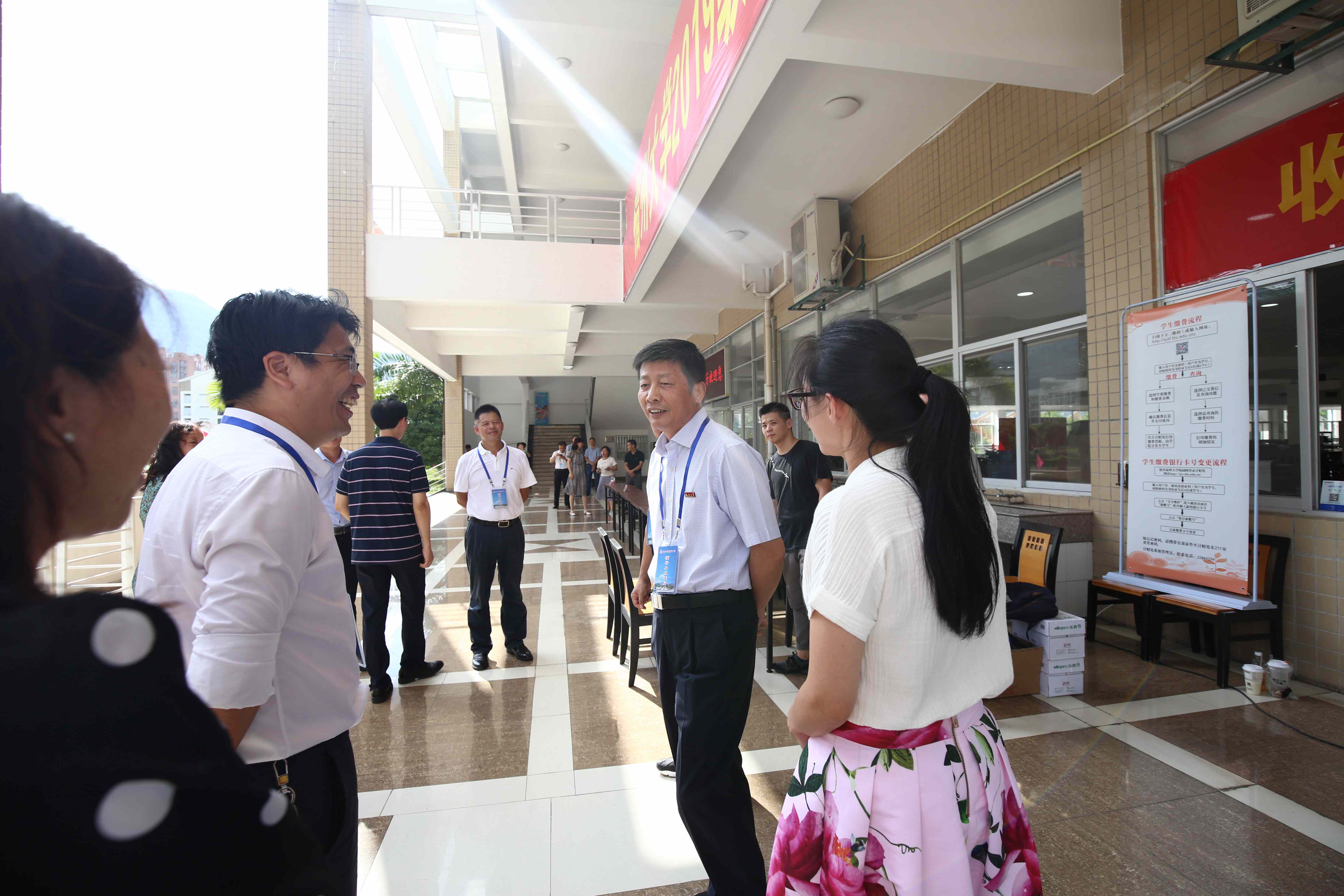 下午三时,骄阳似火,付贤智校长来到迎新点,仔细询问各学院新生报到情况。“还有多少人没有来报到?”“这些没有报到的学生是不是遇到了什么困难?”“晚上可能还有新生报到,食堂要保证供给,各方面的服务要保质保量,确保每位新生能够顺利入学。”看到志愿者在烈日下坚守岗位,认真负责为新生提供帮助,付贤智校长说道,“这些以学生为主体的志愿者,不怕苦不怕累,为迎新工作的顺利开展做出了很大的贡献。”他走过去,与志愿者们一一握手,感谢他们的辛勤付出,祝愿他们学习更上一层楼。