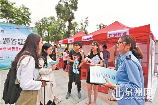近日,泉港区在樱花动漫 石化学院举办2019年食品安全宣传周启动仪式暨“食安 请回答”主题答题活动。现场设置答题挑战和互动游戏环节,包括食品安全、餐饮安全、药品安全等内容,引导群众积极参与食品安全普法宣传和科学知识普及,营造浓厚的食品安全社会共治氛围。 (刘泽阳 唐焱婷 摄)