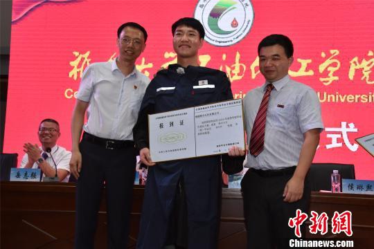在校企人才交接仪式中,福建联合石化有限公司、中化泉州石化有限公司和福建申远新材料有限公司为即将就业的毕业生佩戴工作证。毕业生谢仕欣即将进入福建联合石化有限公司上班,他激动地说,“当时因为兴趣爱好选择了化学工程与工艺这一专业,作为校企政共建的专业学院,学校为我们提供很多学习和实践的机会。”