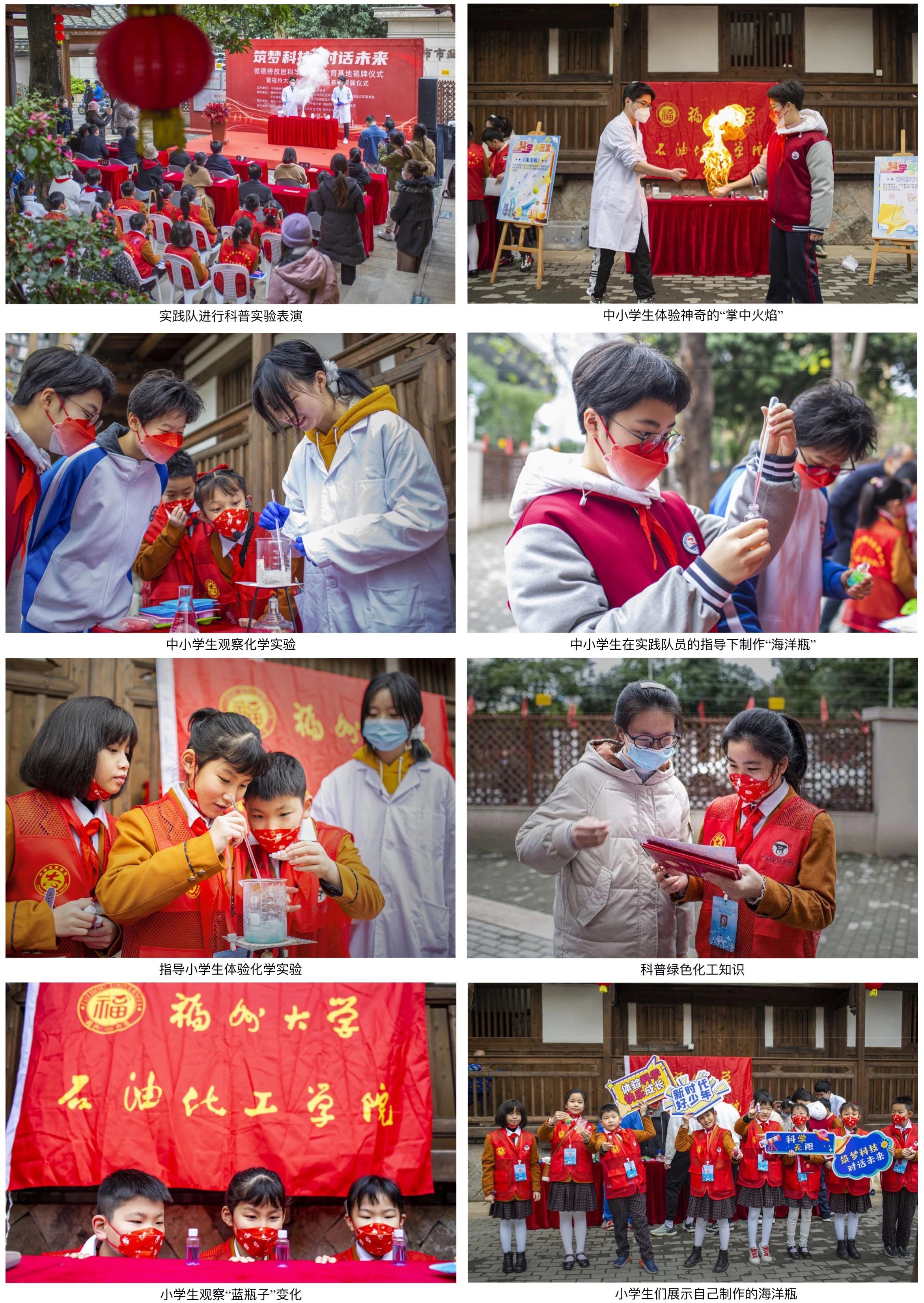 学习活动结束后,实践队为周边的中小学生带来一场生动的科普体验,指导中小学生感受了“掌中火焰”“水蒸气蘑菇云”等科学实验,并现场教授他们制作手工香皂、海洋瓶以及蓝瓶子等化工手工制品。通过有趣的小实验,把侯官文化中崇尚科学、勇于创新的精神与绿色化工科普活动有机结合,激发青少年爱科学、学科学、用科学,学化工、懂化工、爱化工的兴趣,在中小学生的心灵中种下一颗探索科学的“种子”。