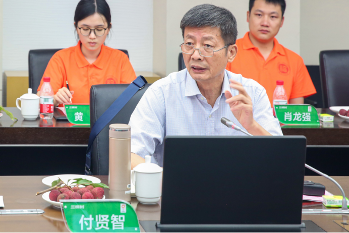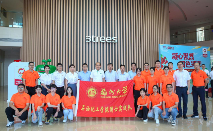 与三棵树集团密切合作,深度交流,在人才培养、科技创新、社会服务以及文化传承创新等方面有着深厚的合作基础,希望校企双方能够进一步深化合作,强化融合发展,共同推进校企高质量发展。在听取福大毕业生代表们的成长汇报后,付贤智校长表示由衷的欣慰,他希望校友们能够以企业为家、团结协作,展现福大人的责任与担当,并欢迎他们常回家看看,为母校的发展建设多提宝贵意见和建议。付贤智校长还对石化学院博士实践队十二年来能够秉持化工强国的初心,奔赴企业一线调研,解决行业技术难题表示肯定和赞赏,鼓励同学们一定把实践调研长期坚持下去,做深做实,并提出三点希望:一是要深入基层、提高站位,让思想认识淬炼升华。二是要脚踏实地、励志笃行,让理论实践知行合一。三是要主动作为、研以致用,让科研成果落地开花。