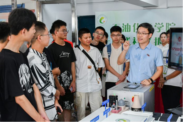 以项目成果体验开启情境式育人。学院充分利用福大紫金氢能“科产教”产业平台项目成果转化优势,将最新的科研成果转换项目“氨能动力”设备布置在新生迎新点现场,并邀请参与项目的国家级青年人才为新生们进行现场讲解,让新生在入学的第一时间“零距离”感受专业魅力,提升对专业的认可度。