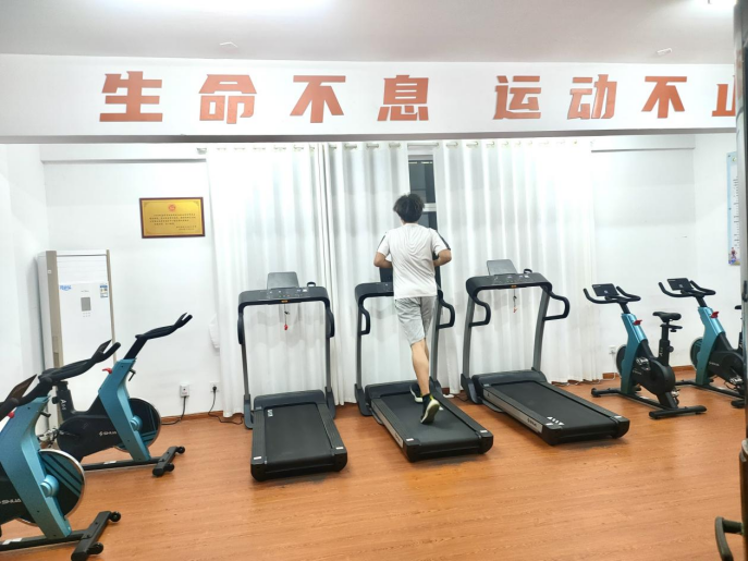 同学们利用课余时间在“一站式”健身中心锻炼身体