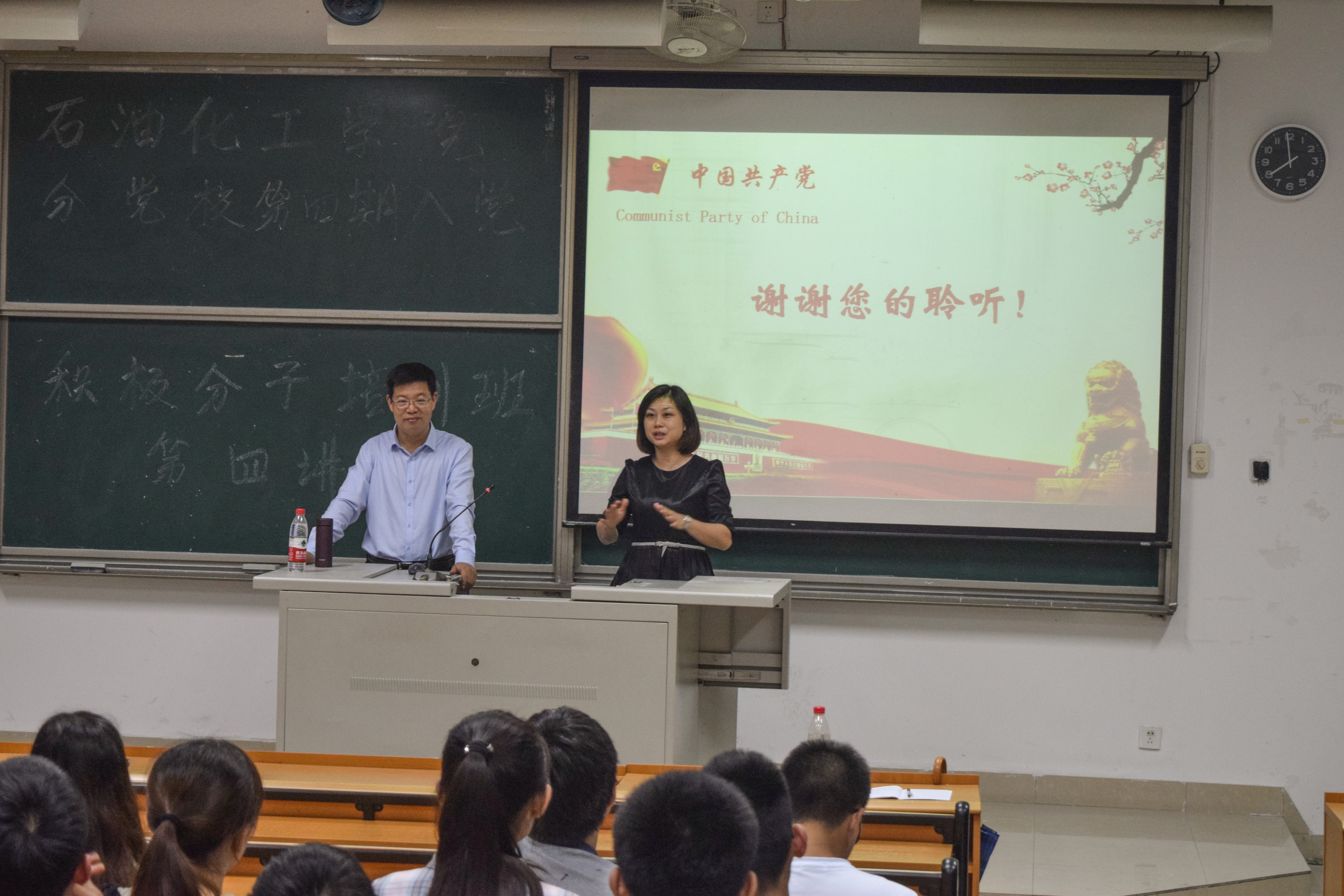 分党校第四期入党积极分子培训班第四讲在文二105顺利举行。本次培训会由校党委组织部副部长施卫华老师为学员们讲授《学好< 关于党内政治生活的若干准则>,争做合格大学生党员》专题党课。院党委副书记刘玮老师主持。
