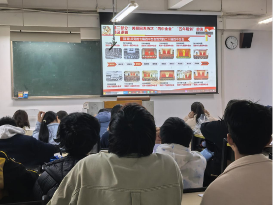 詹志华教授从历史、现实、理论、实践与凝聚共识五个维度,阐释了深入领会党的二十届四中全会的重大意义,并以时间为坐标轴,仔细回溯历次“四中全会”、“五年规划”的演进及逻辑。报告通过详实数据、事迹和党的最新理论、政策等,引导师生全面理解“十五五”规划,重申坚持和加强党的全面领导是推进中国式现代化的根本保证,必须坚持以党的自我革命引领社会革命,持之以恒推进全面从严治党,增强党的政治领导力、思想引领力、群众组织力、社会号召力,提高党领导经济社会发展能力和水平,为推进中国式现代化凝聚磅礴力量。