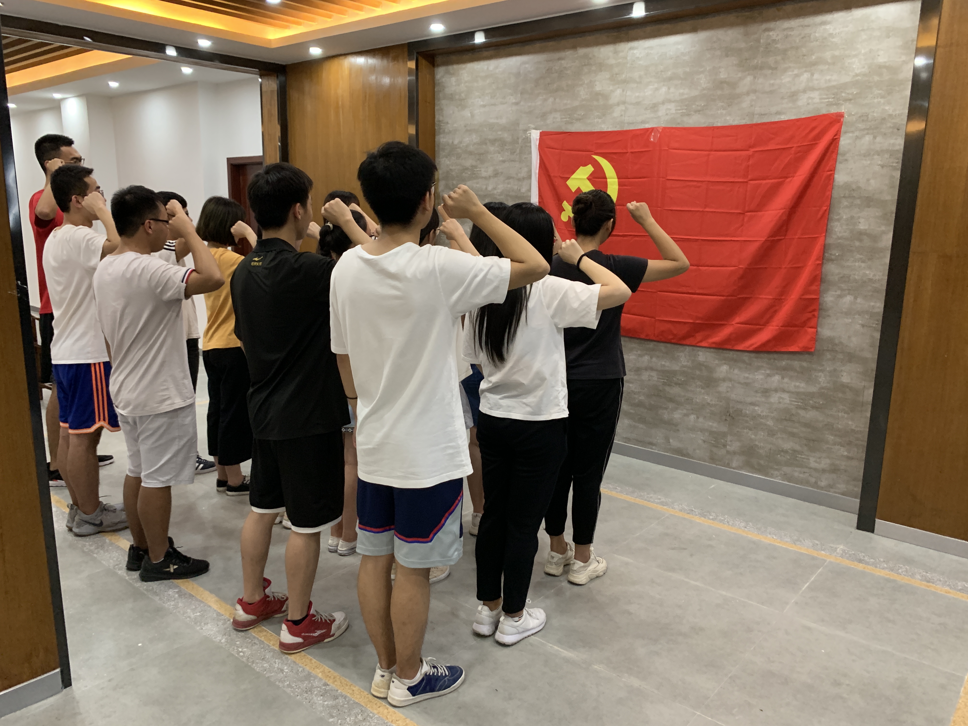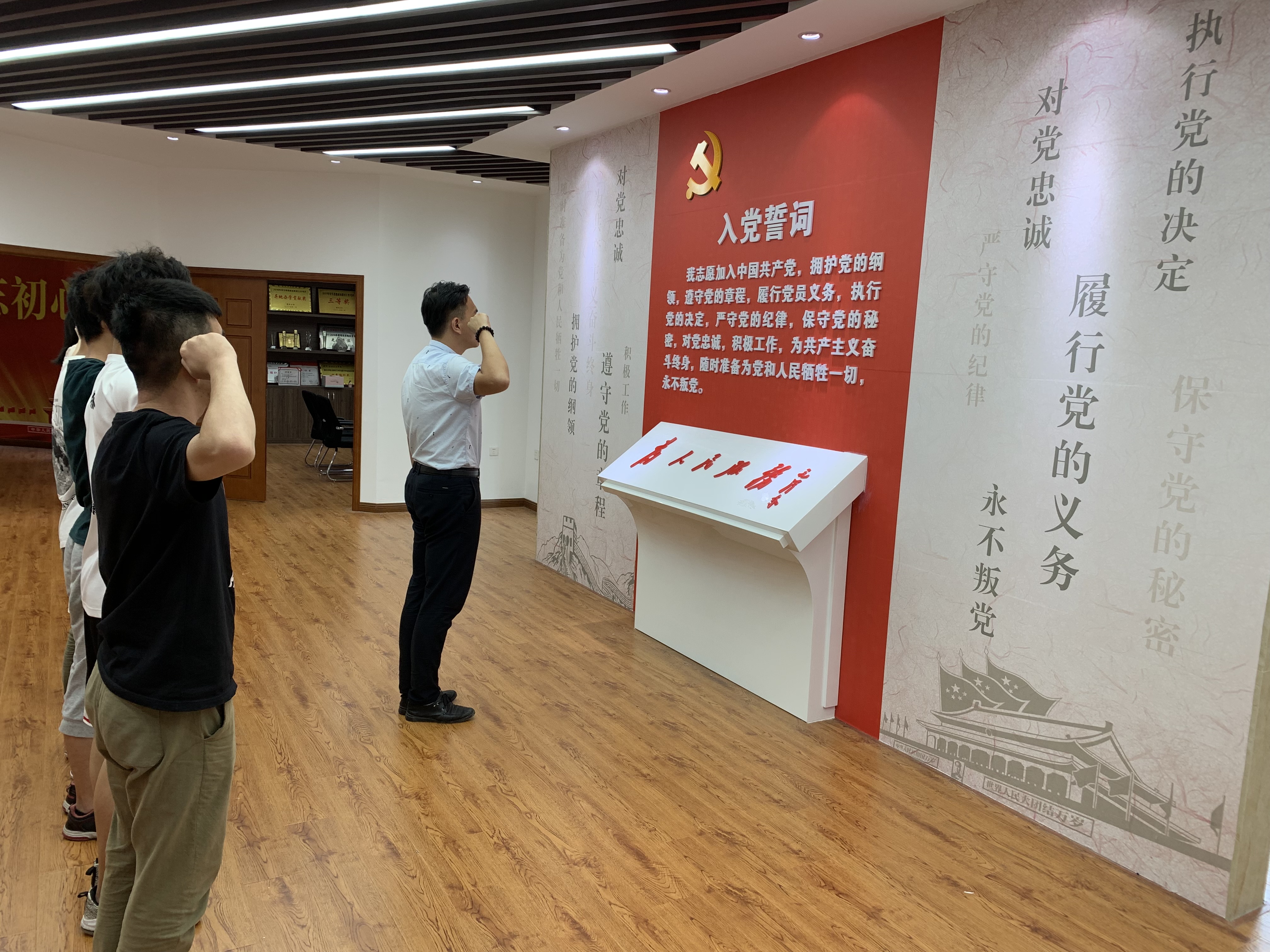 首先,党员们在入党誓词前肃立,右手握拳,庄严诵述入党誓词。在重温入党誓词的过程中,党员们回忆起自己当初入党时的重要时刻,重温自己入党的初心和使命,坚定自己不忘初心,牢记使命的信念。