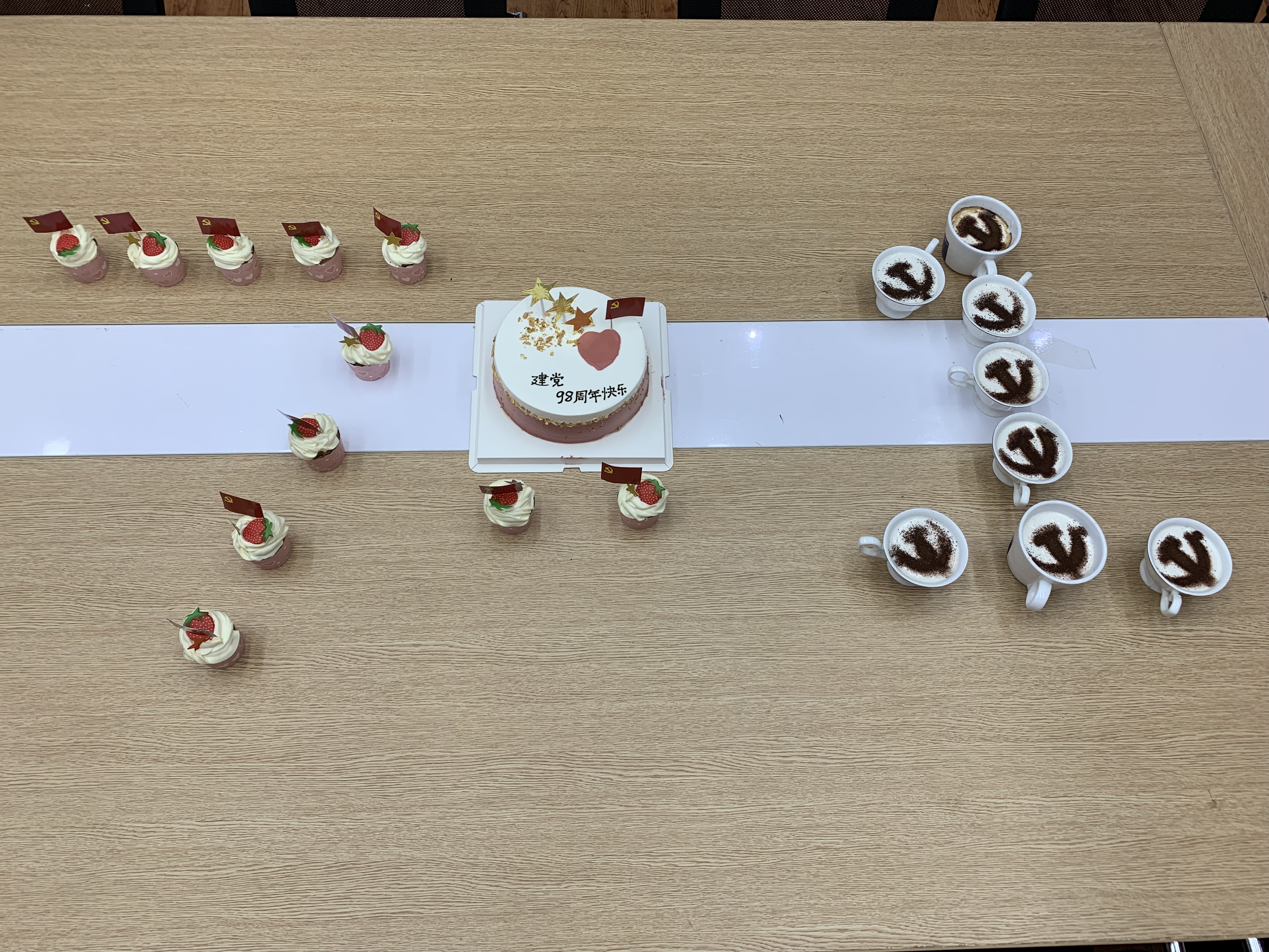 组织党建部为该活动精心筹划,手工制作具有党建元素的纸杯蛋糕和党建咖啡,营造了温馨的活动氛围。