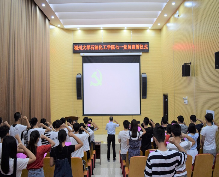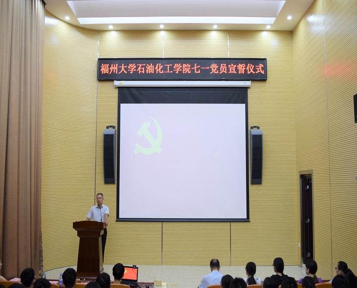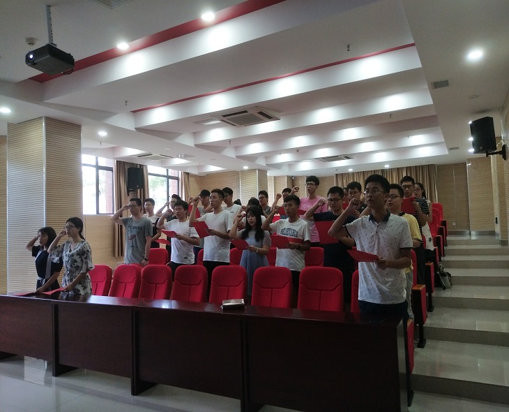 2018年 新党员入党宣誓大会,为63名新党员举办入党宣誓仪式。大会分为旗山校区主会场和泉港校区分会场,通过视频会议方式在双校区同步进行宣誓仪式,院党委副书记岳志强老师、学院团委书记蒋林娟老师和团委副书记伍宇翔老师、林泉富老师参与了本次大会。