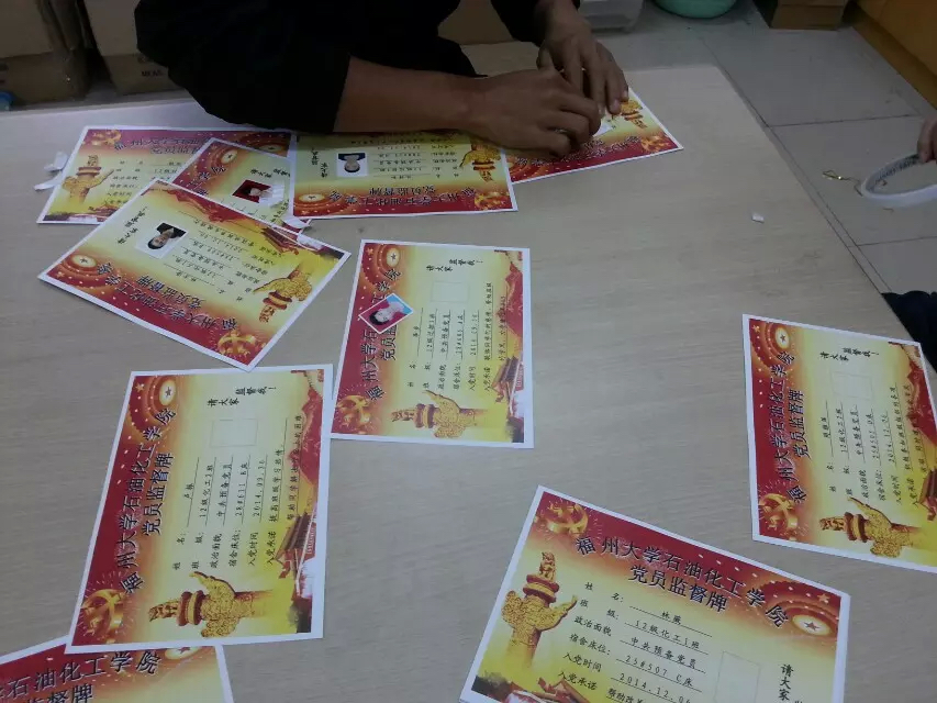 为每一间石化学生党员宿舍都贴上了党员监督牌,以此号召更多的同学参与到党员监督行动中去。