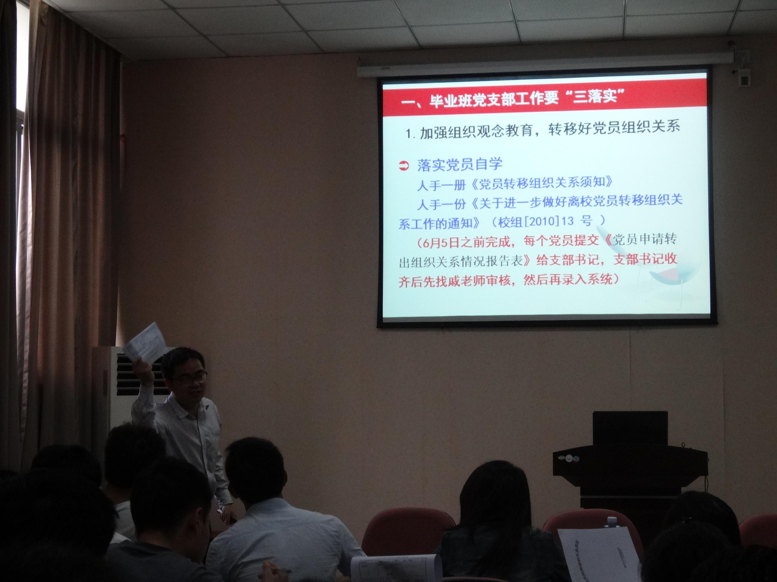 2015届毕业生党员离校教育在院办205会议室举行,本次会议的主讲人是毕业生辅导员陈艺全老师,石油 樱花动漫