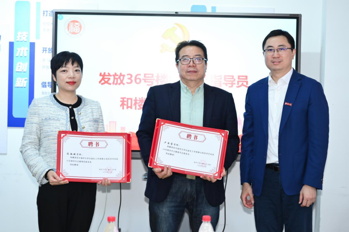 随后,现场宣读了联系石化学院的各楼宇总指导员、楼层指导员、楼宇兼合党支部书记名单并颁发了聘书,继由楼宇总指导员、楼层指导员为各个楼宇兼合党支部授牌。