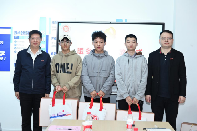 座谈交流结束后,各楼宇总指导员、楼层指导员为学生代表发放暖冬物资,期望这些物资能够给同学们带去一份温暖的同时更能点燃同学们心中爱的火焰,用更加优异的成绩积极回报社会。