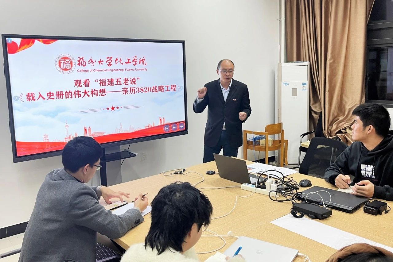 关工委于泉港楼304会议室组织师生观看了由福建省教育系统关工委主办的《五老说第102期黄开良:载入史册的伟大构想——亲历3820战略工程》,学院团委书记伍宇翔主持本次主题教育会。