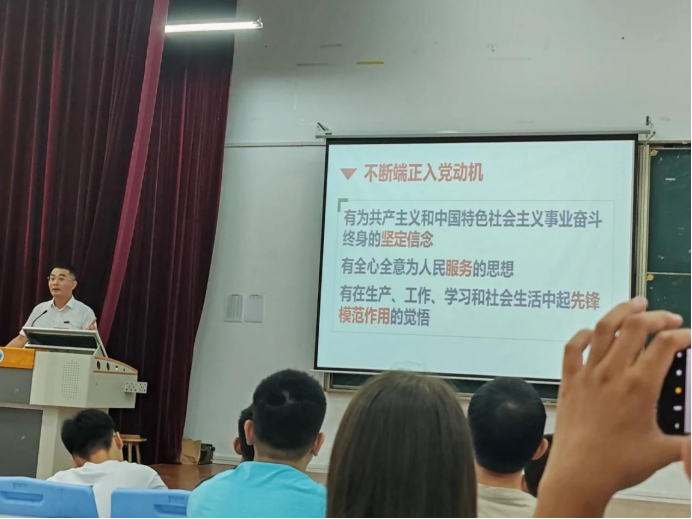 金秋九月,征程新启。为深入开展学校学生入党工作,引导新生提升对党的认识,提高入党积极性,9月2日上午,石化学院邀请学生工作部柯江锋副教授前往铜盘校区科报厅B为本院2023级全体新生开展主题为《心怀梦想,追求卓越》的入党启蒙教育讲座。