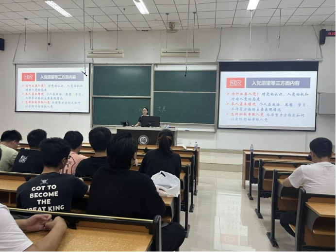 首先,赵艳莉老师把“班级和党支部的区别是什么?”这个问题抛给新生们,让新生们在讨论中主动思考成为优秀的研究生应具备的条件。随后,赵老师向新生们介绍了党从诞生到带领人民“站起来”“富起来”“强起来”的光辉发展历程。通过现场互动的方式,赵艳莉老师向大家阐述了“共产党是工人阶级的先锋队”的原因,进一步加强同学们对党的认识。最后,赵老师向新生们介绍了党员发展的基本条件、党员发展的流程、入党申请书的格式以及书写内容等方面的要求,强调研究生新生应端正入党动机。