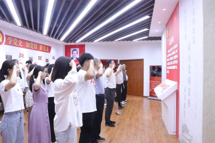 七一建党节当天,在旗山校区泉港楼樱花动漫 党员干部教育培训基地主题教育馆,院党委为2023年新发展党员举办了七一入党宣誓仪式。在院党委林航书记、蒋林娟副书记的带领下,33名预备党员右手握拳高举过肩,神情严肃,庄严宣誓,一句句铿锵有力的承诺,一声声发自肺腑的誓言在会场久久回荡,向党组织表达自己坚定的决心和不变的信念。宣誓结束,林航书记代表院党委向新入党的同志们表示祝贺,并向他们提出四点要求:一是要加强学习,坚定理想信念;二是要牢记宗旨,践行初心使命;三是要担当负责,发挥表率作用;四是要从严律己,维护党的形象。
