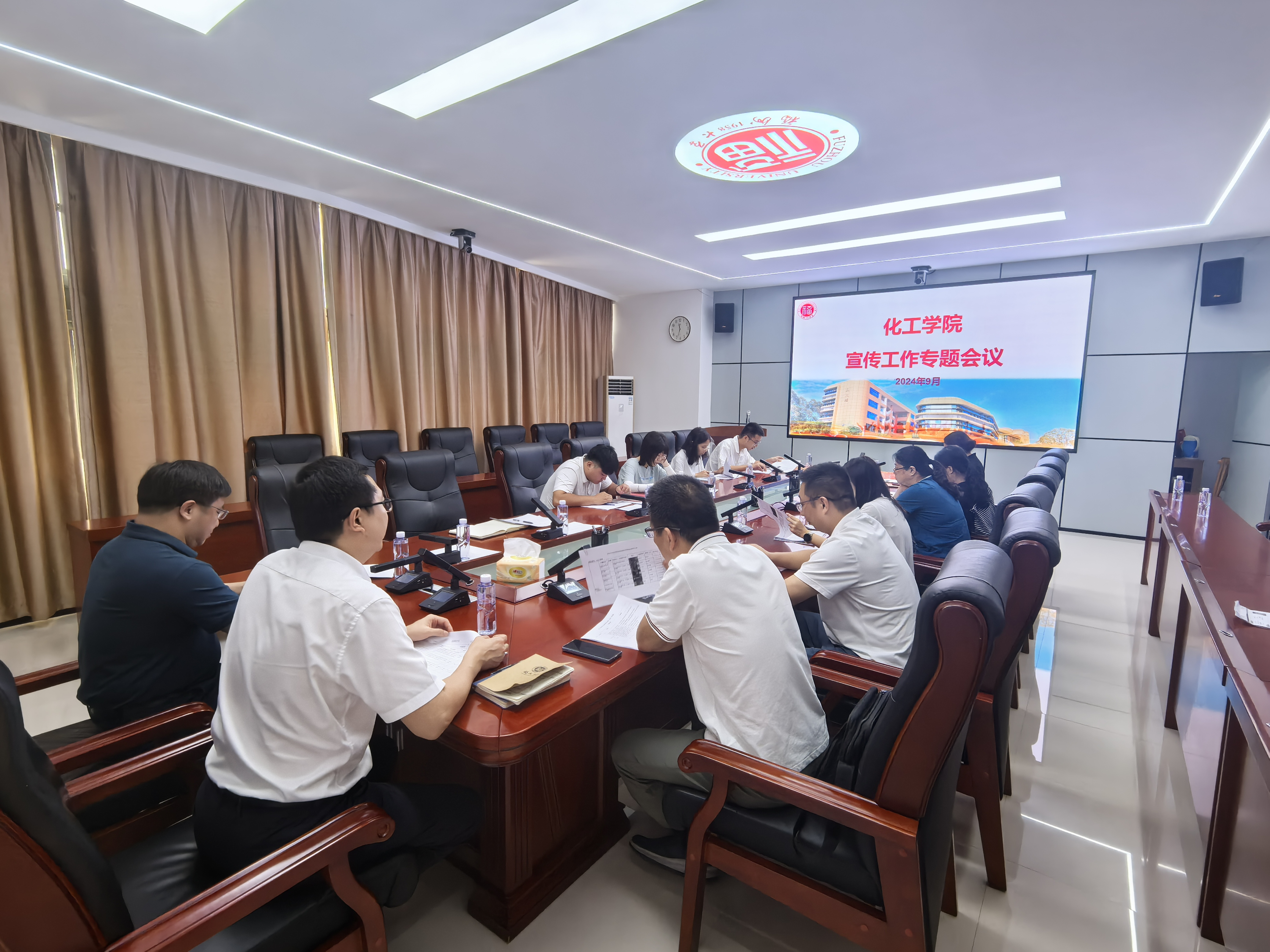 在泉港楼召开宣传工作专题会议。学院党委书记林航、院长江莉龙及院党委办、行政办、学工办全体行政管理人员参加会议。