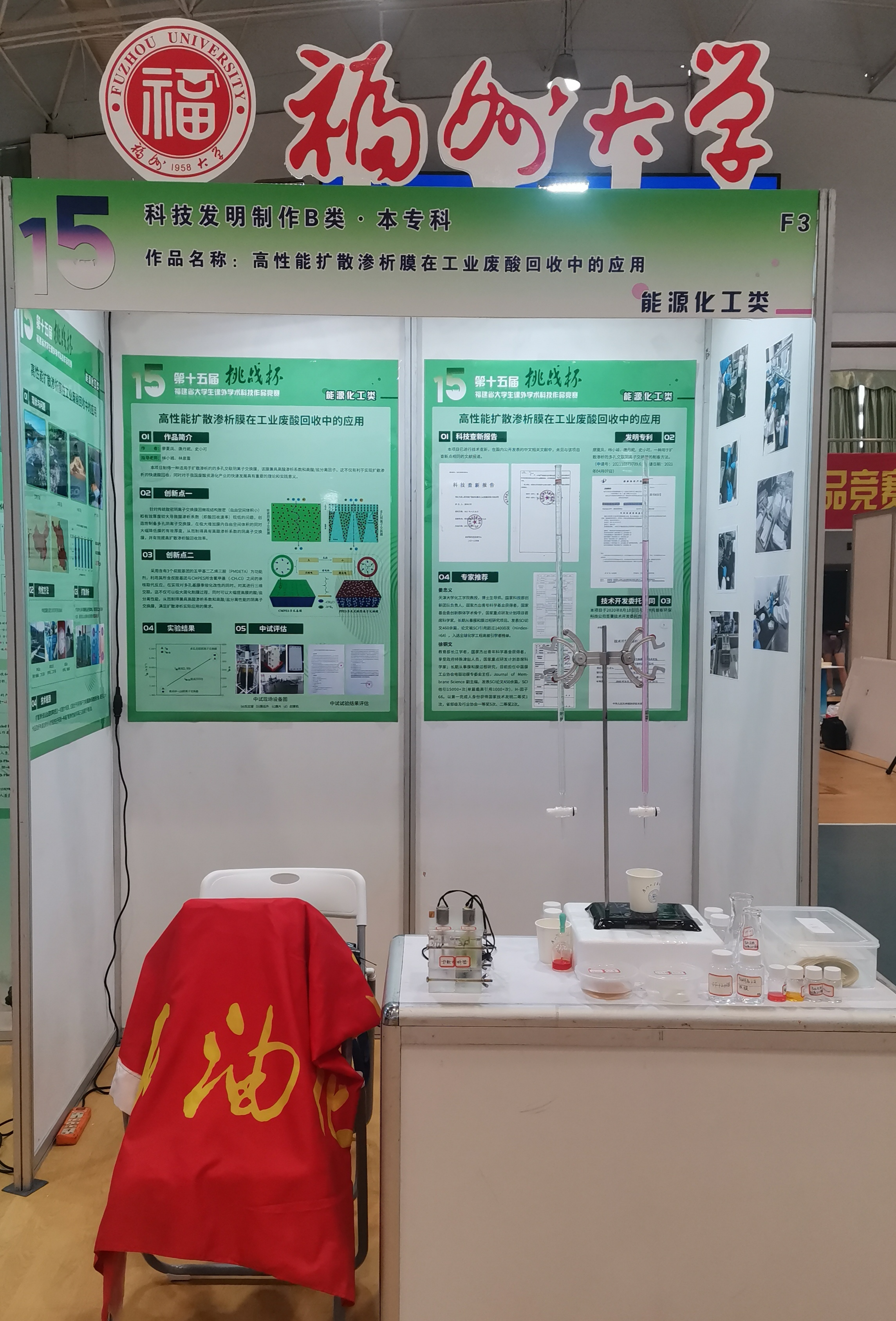 林小城教授,林泉富老师指导的学生团队项目《高性能扩散渗析膜在工业回收废酸中的应用》荣获第十五届“挑战杯”福建省大学生课外学术科技作品决赛特等奖!