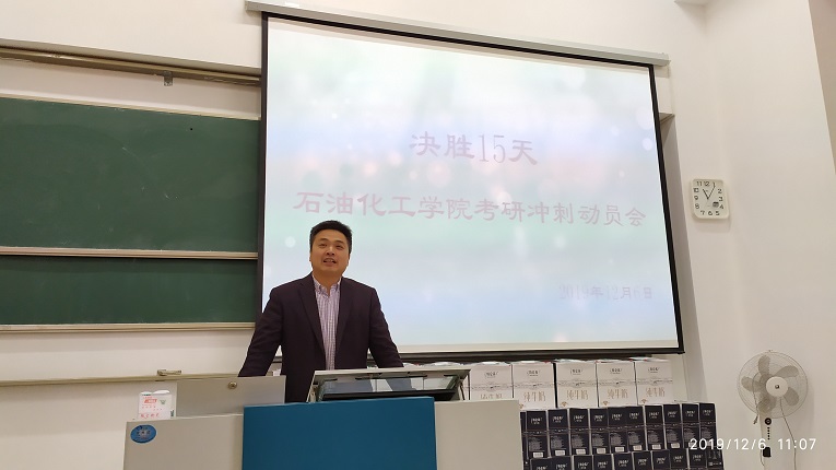泉港校区教学楼305召开2020届决胜15天考研冲刺动员会,本次会议邀请院党委书记叶志清为考研学生做动员,院党委副书记岳志强以及各年级辅导员出席本次会议。
