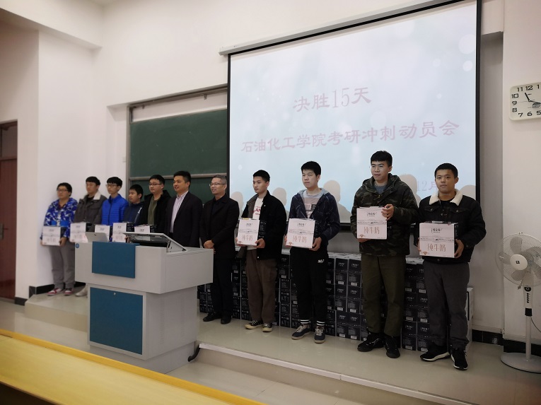 叶书记自身求学经历为切入点,以“自信、坚持、保重、细致”四个关键词为核心,鼓励考研学生在最后的冲刺阶段要有信心,相信大家的努力能够得到回报;叶书记强调,考研过程最重要的是坚持,越到最后关头考验的是大家的毅力,希望同学们能够坚持走完这一过程;同时,因最近天气的变化,叶书记要求大家做好防寒保暖工作;最后,叶书记希望同学们在考场需要细致认真,做好每一道题目,发挥出应有的水平。在动员会的最后,叶志清书记和岳志强副书记为学子们发放考研爱心牛奶以及考研文具。