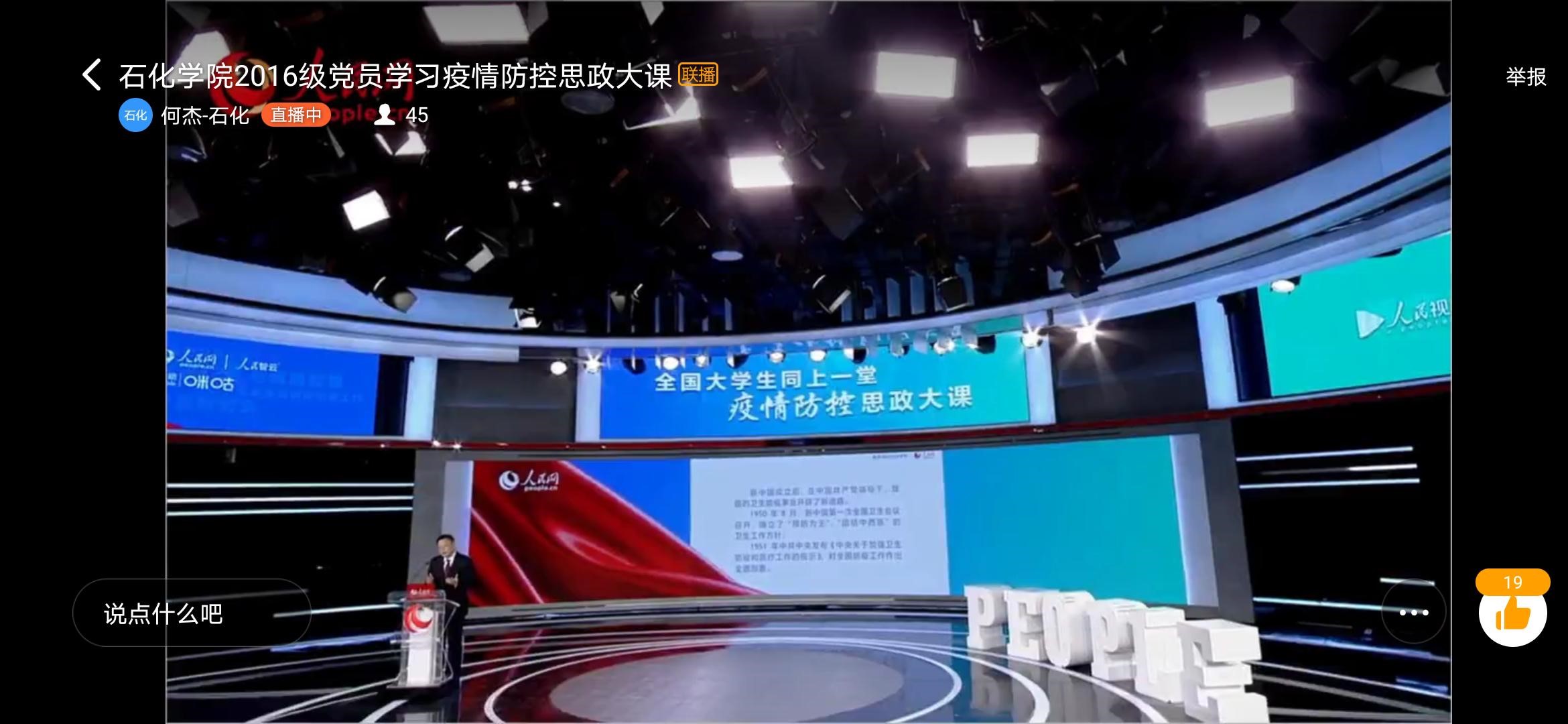 石化学院19级学生们认真地观看直播,并被疫情防控工作中涌现的感人案例深深打动: