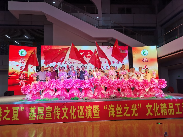 在独具韵味的北管歌舞《采桑》中,活动拉开帷幕,演员们美妙的舞姿瞬间点燃了观众的热情,紧接着,激情澎湃的诗歌朗诵《青春石化人,追梦中国心》、慷慨激昂的男声四重唱《祖国不会忘记》、清丽悠扬的南音清唱《望明月》等12个节目轮番登场,为现场观众带来一场精彩纷呈的视觉盛宴。