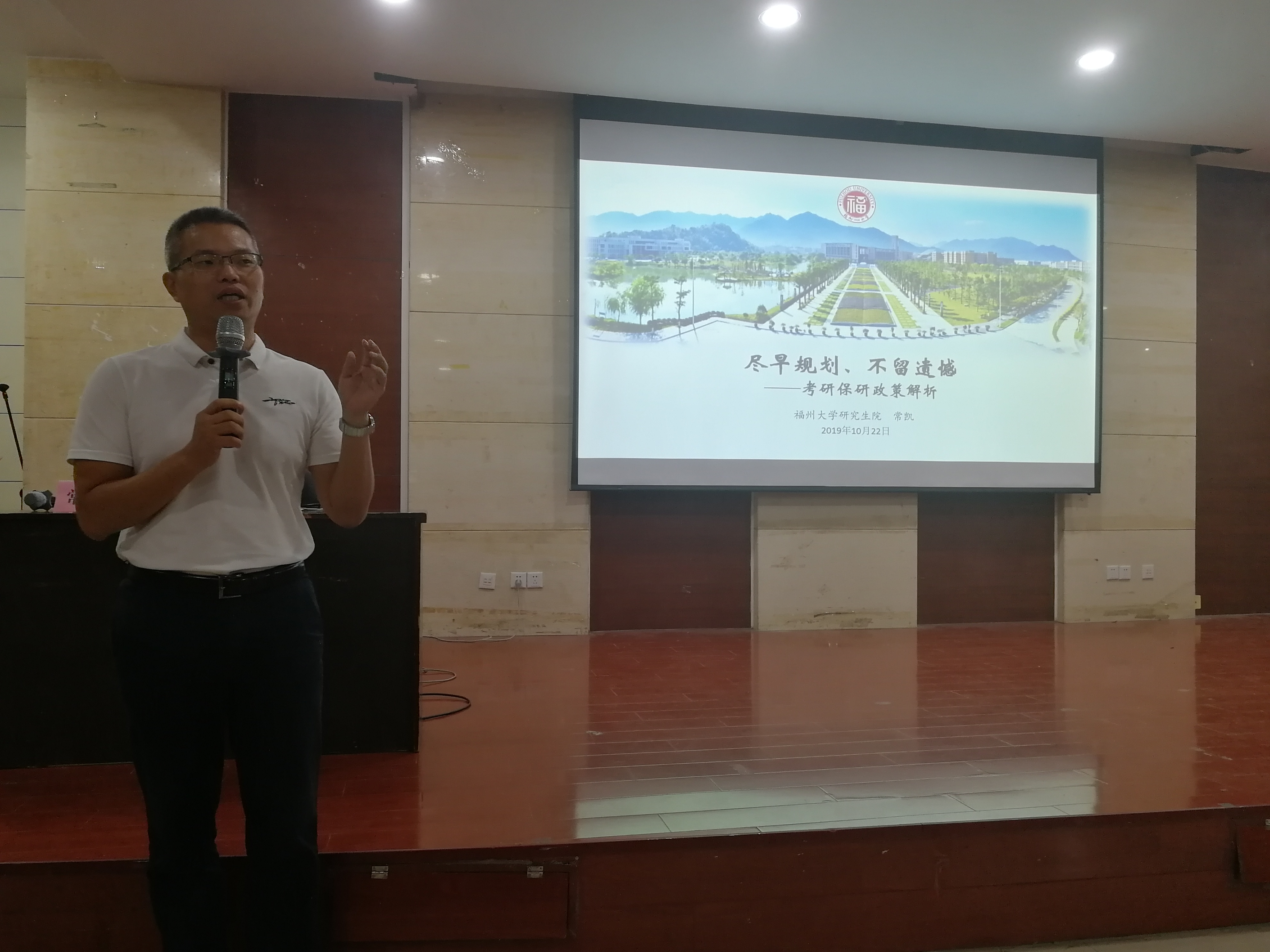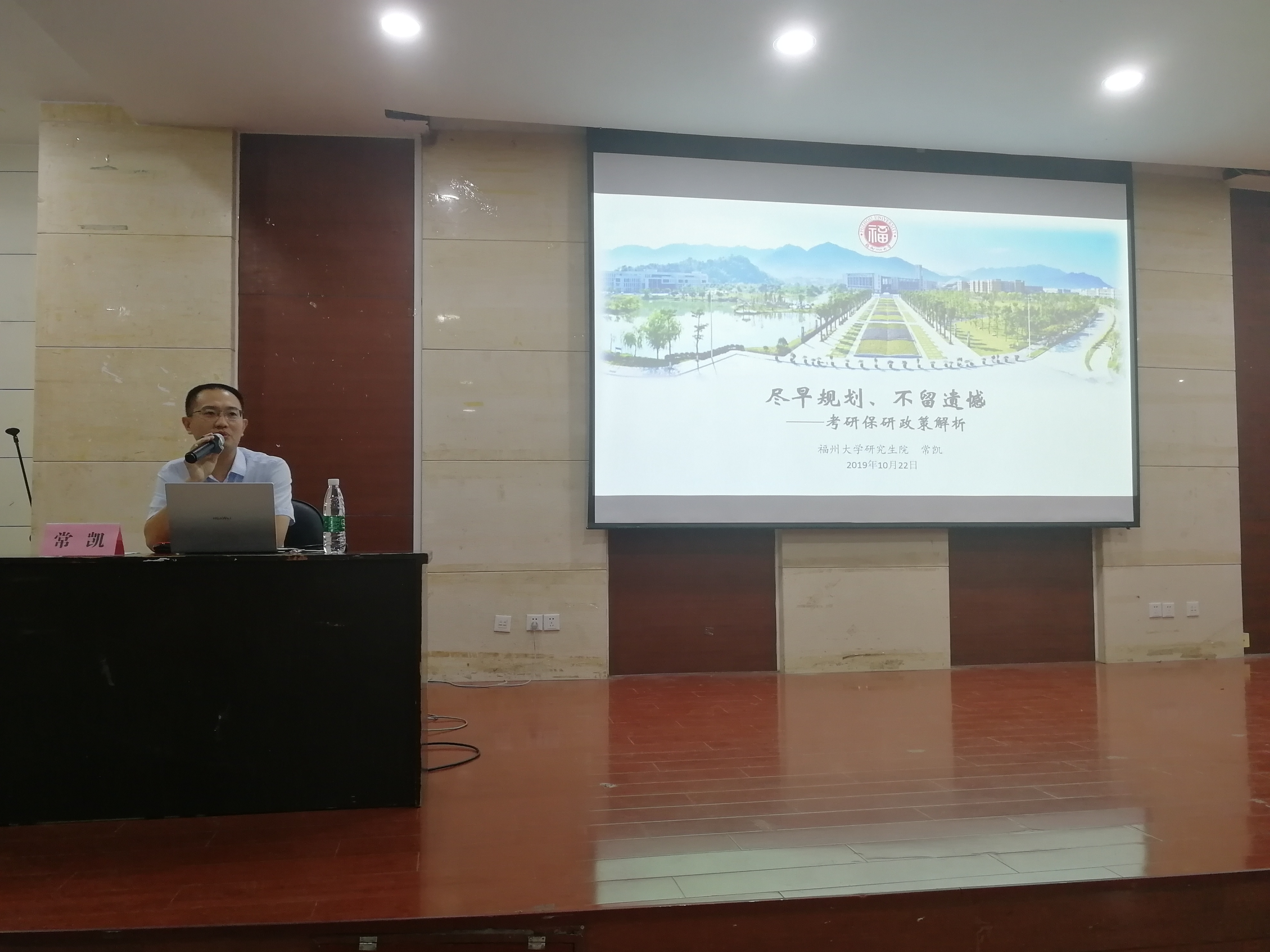 研究生院培养与学籍管理办主任、副研究员常凯老师,为19级新生讲解考研保研相关知识及政策解析,院党委副书记岳志强老师及19级辅导员林泉富老师参与此次活动。