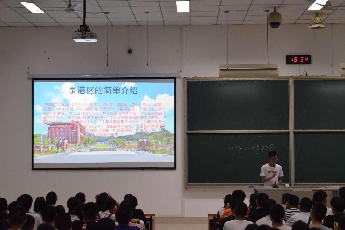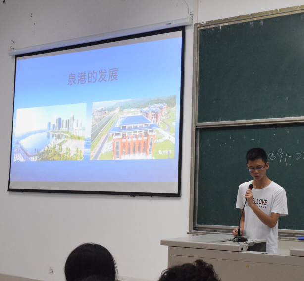 延续往年传统,从19级新生中挑选出几位来自泉港的新生,由他们向全体新生介绍泉港的人文自然景观、闽南文化与校区情况。