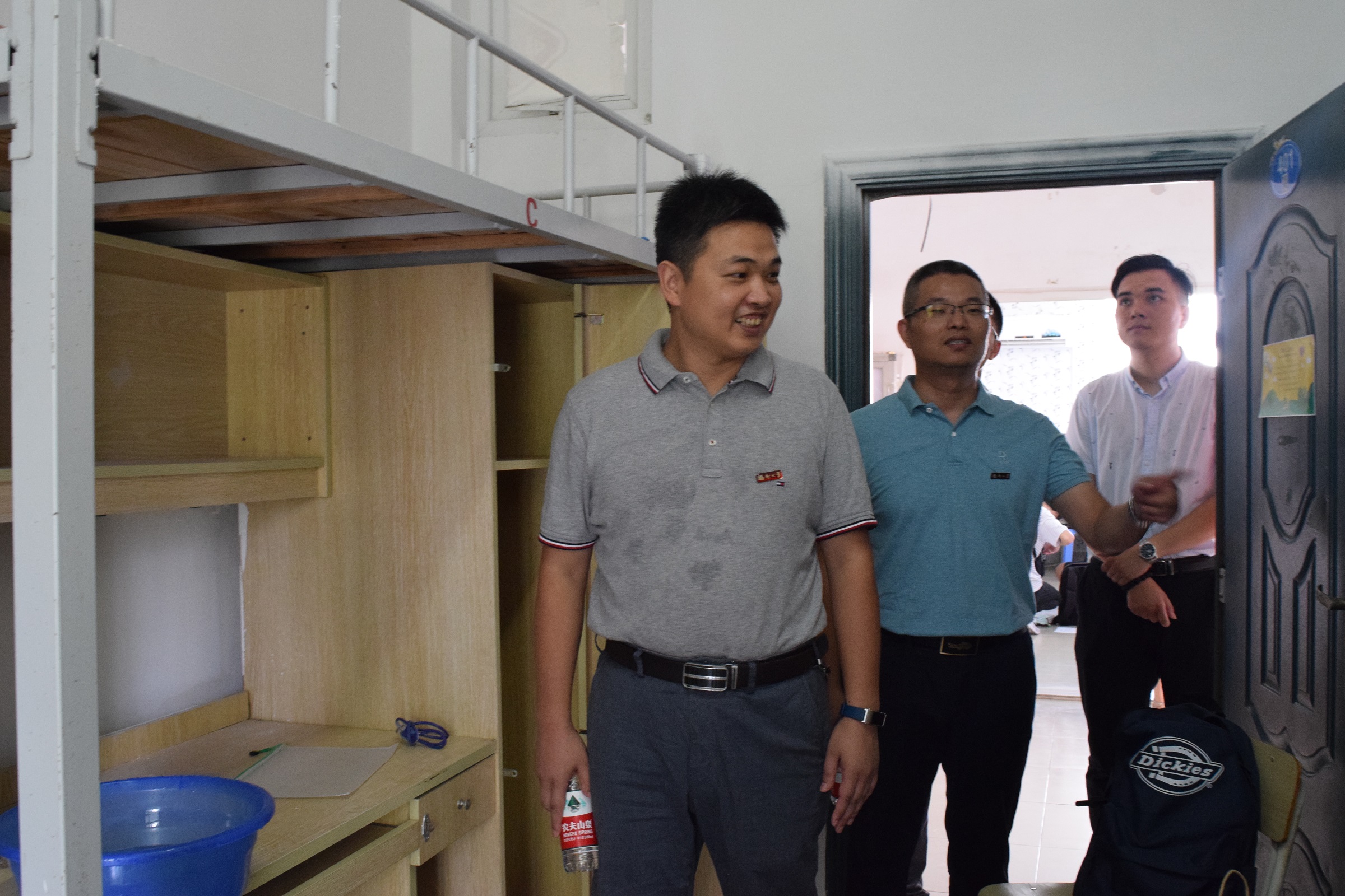 顺利举办19级新生入学报到工作。全体党政领导高度重视,来到迎新现场指导迎新工作。“天气这么热,大家要注意防暑。”“有没有什么问题?”“物资够不够?”学院领导们详细了解报到的流程和新生的报到情况,并对全体迎新志愿者们的辛苦付出表示感谢。他们勉励志愿者们继续努力,为新生营造家的感觉。随后,他们深入宿舍走访新生,与新生和家长亲切攀谈,为他们解答疑惑,以人文关怀拉近了师生距离。