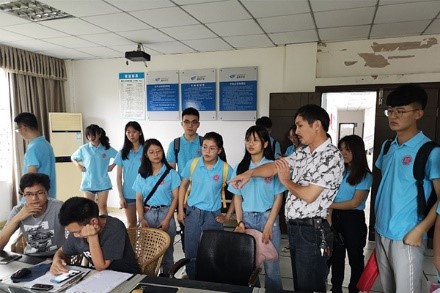 在环境监测站副站长孙柏林的带领下,实践队参观了实验室,并向队员们介绍了药品室、水室、气室、气相色谱室的运行流程等,听到各类熟悉的专业名词,亲眼看到各式的专业仪器,这些给予了队员们首次专业与职业相对口的直观感受。队员们纷纷表示“这才是把理论运用于实践”。听闻工作人员的取样过程,队员们感受着取样实际过程的细节与严谨。
