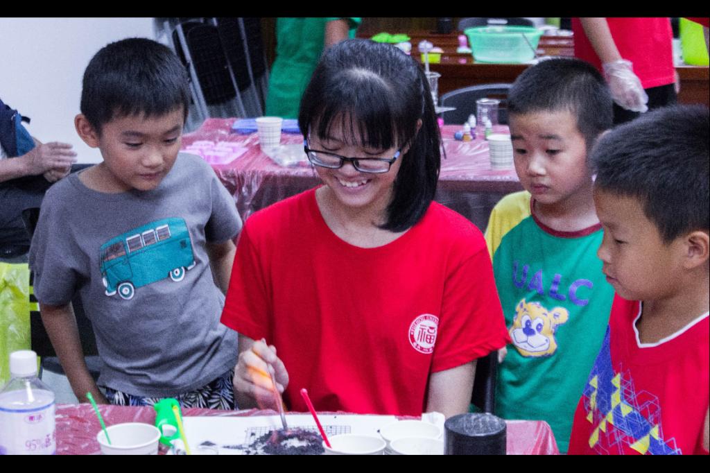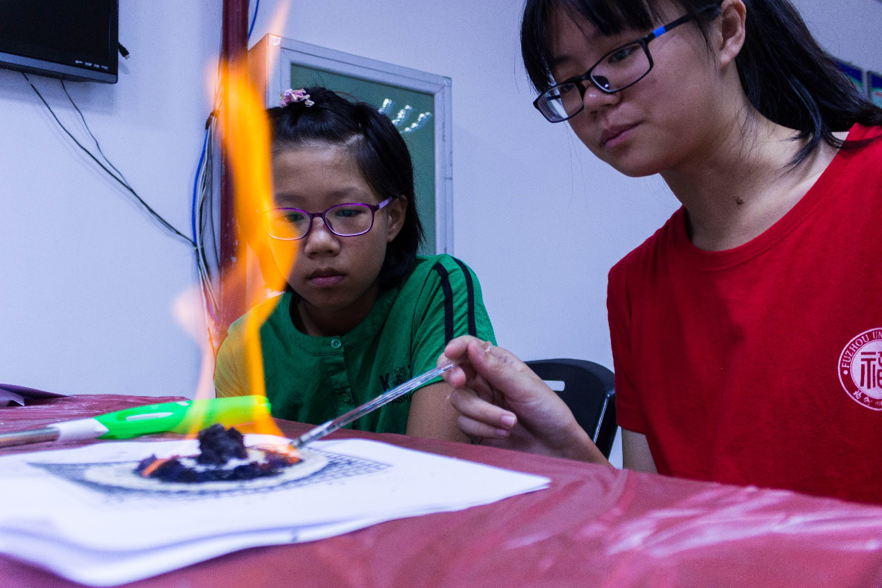 为响应国家可持续发展号召,让很多的普通民众了解绿色化工,宣传环保理念,福大石化学院于7月17日赴丽景社区实践队开展系列活动,实践队进行了“法老之蛇”和“瓶口吐烟圈”的趣味实验,还制作了趣味化工产品“爆爆珠”以寓教于乐的方式让居民深入了解绿色化工。