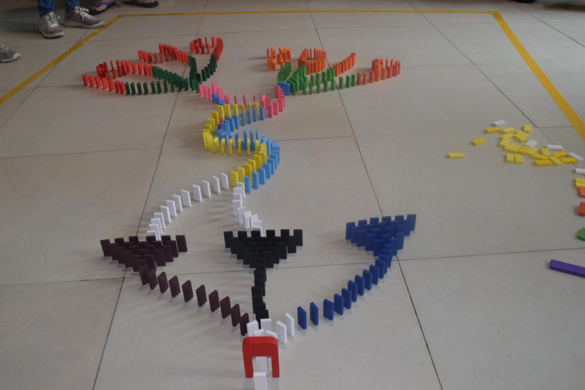 多米诺文化起源于中国,它通过用骨牌搭建各种图案、利用机关实现连接并推倒的方式,增强参与者的团队协作能力与想象力。