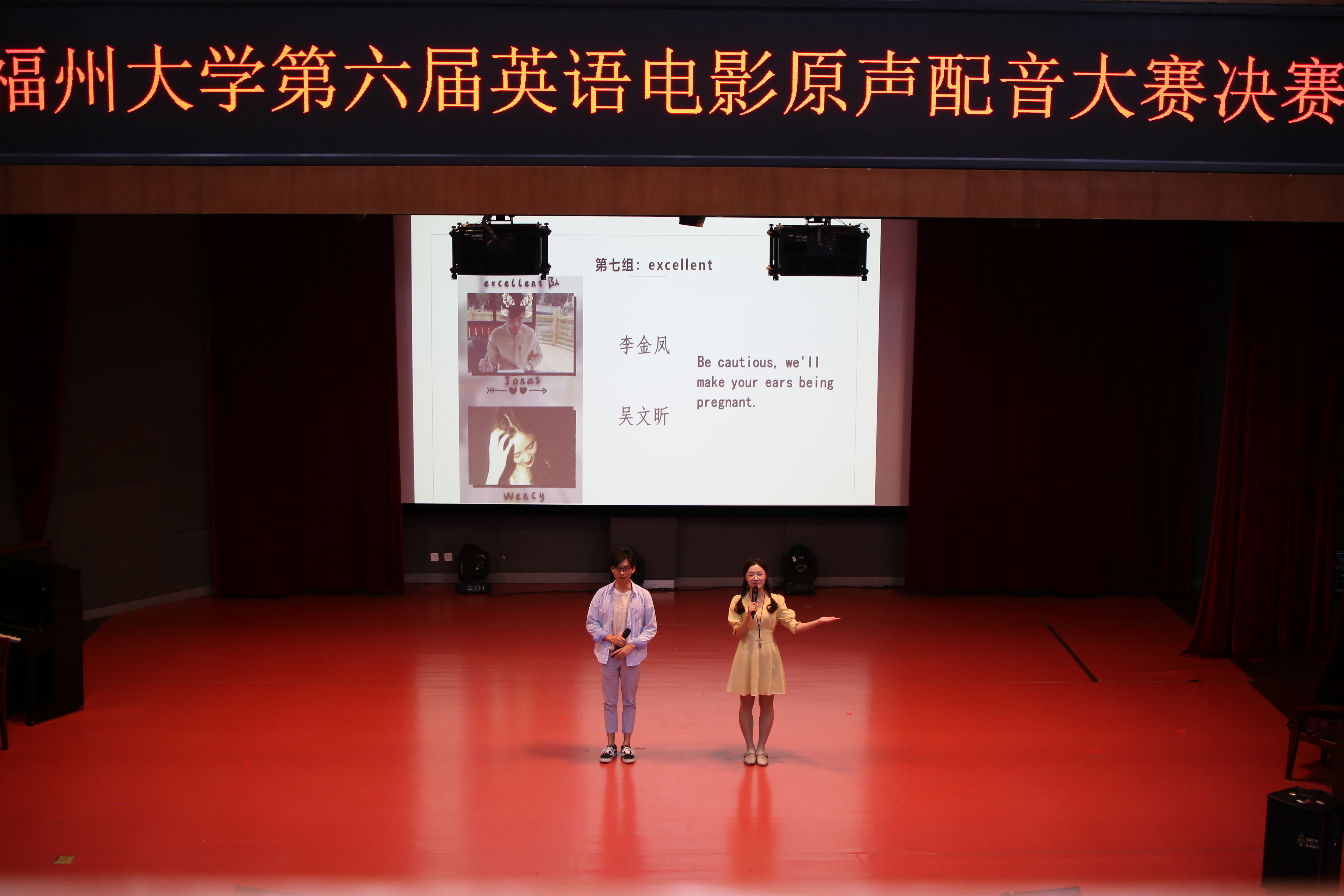 在戴力芬老师细腻的点评中,一场视听盛宴落下帷幕,Elane and Anthony队荣获一等奖;play着配队、艾克斯歪艾克斯队荣获二等奖;查无此队、excellent队、夸夸夸不如呱呱呱队荣获三等奖;excellent队荣获最佳人气奖。