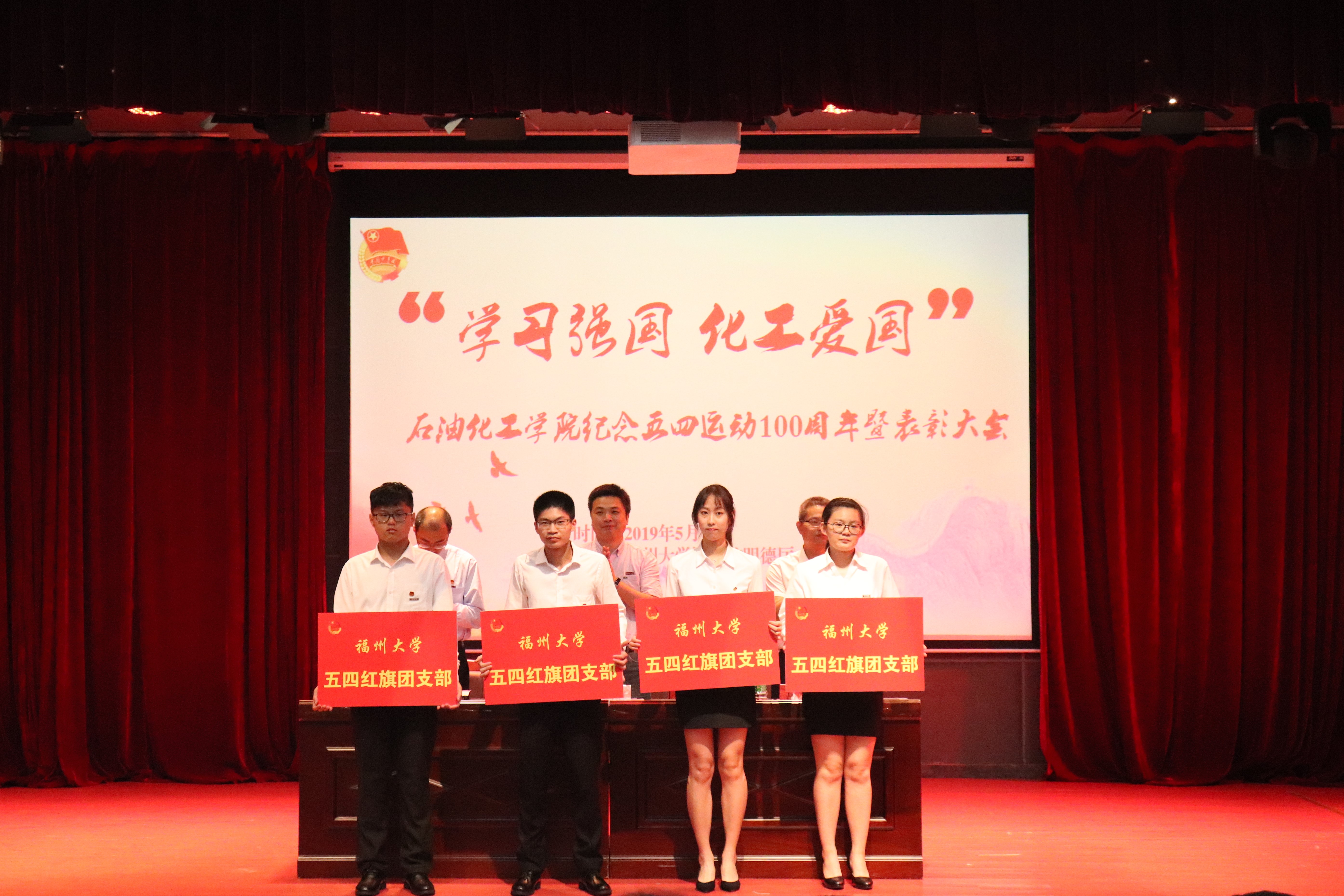 于5月17日下午六点于图书馆明德厅隆重举行以“学习强国 化工爱国”为主题的纪念五四运动100周年暨表彰大会。