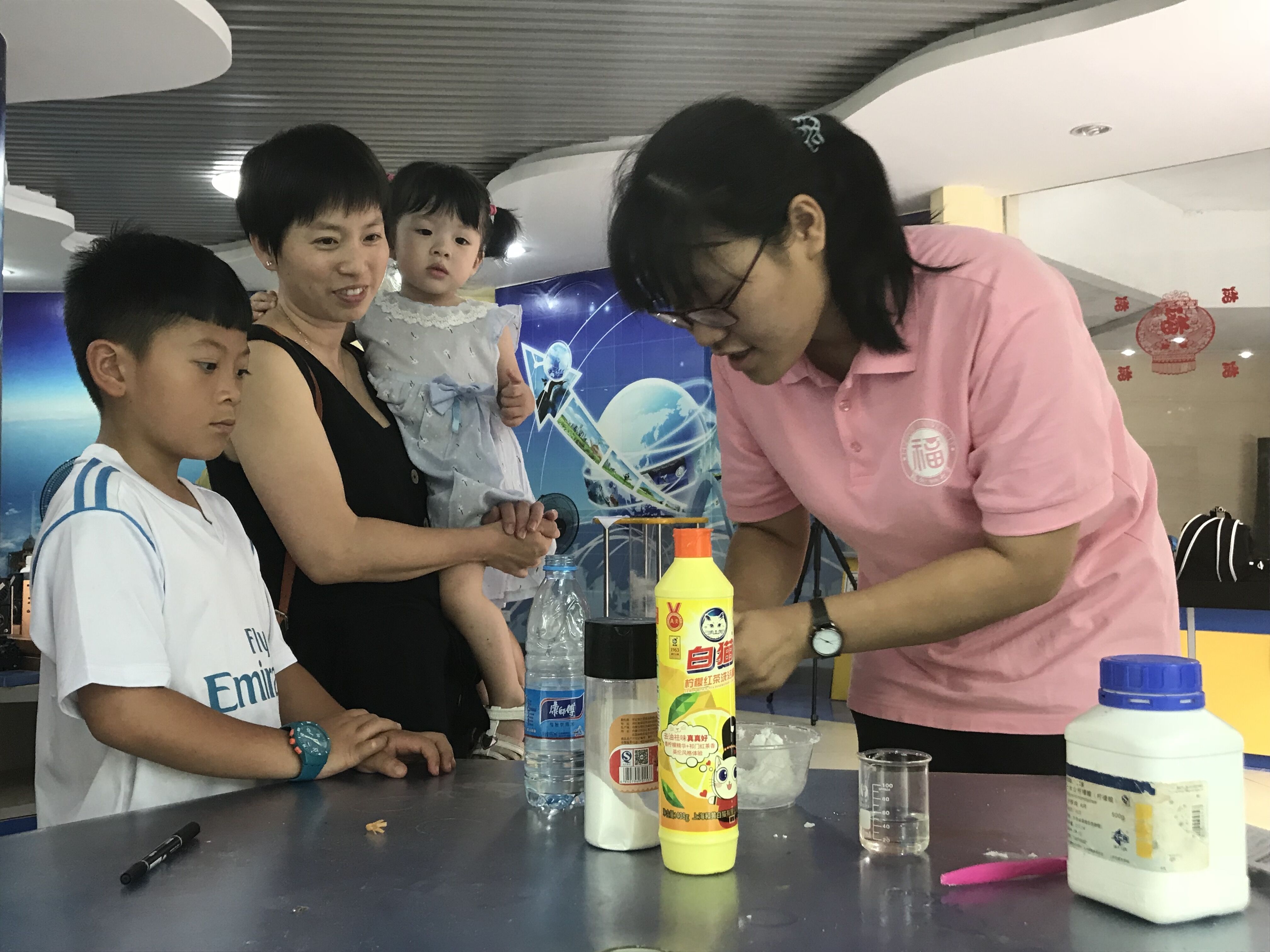 通过实验互动等环节,让居民们更加了解化工的魅力,激发新一代人去探索化工的神秘。队员们满怀激情,充满热情,将自己所学的专业知识更有效的发挥出来,将绿色化工理念融入实践当中。