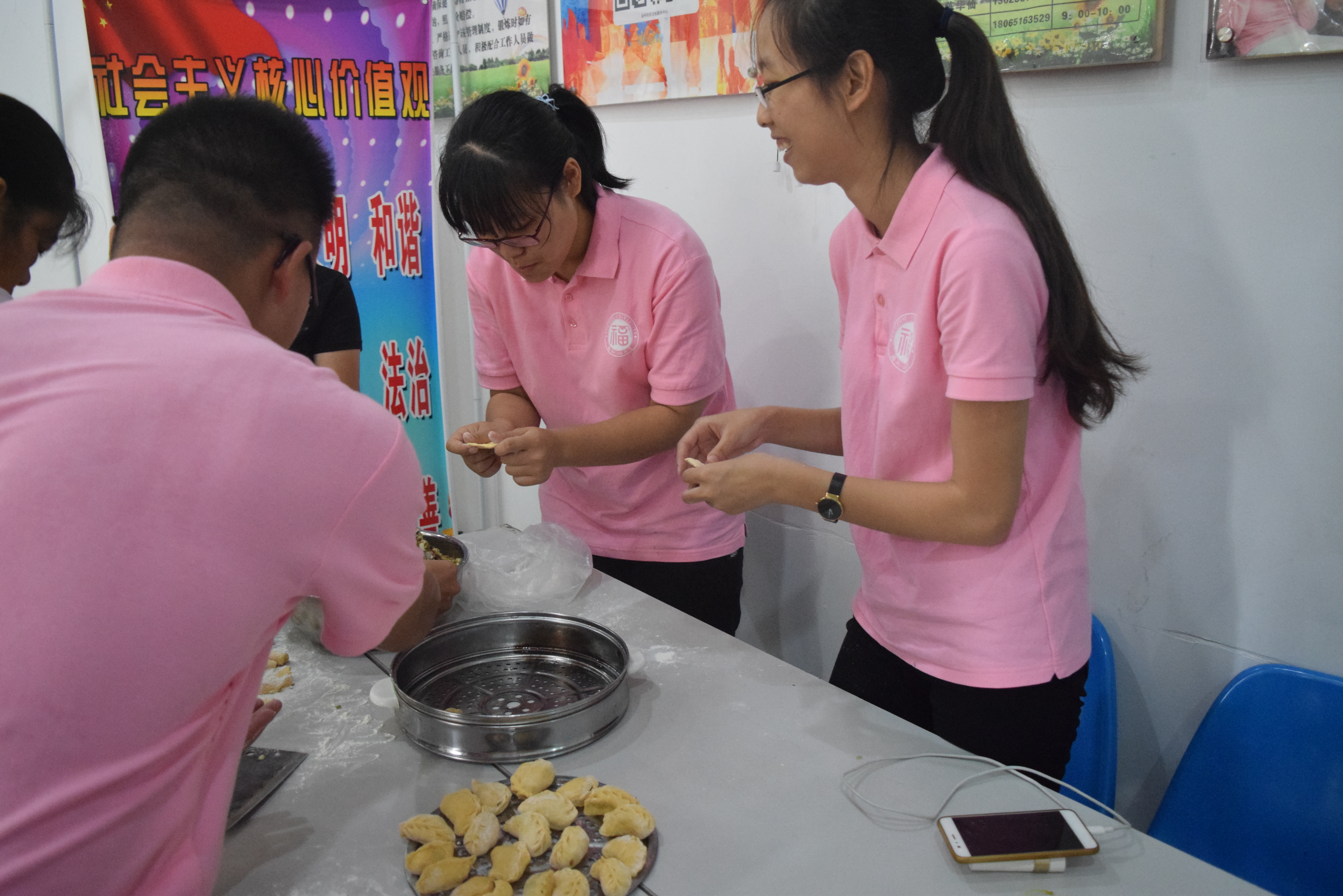 实践队队员们兵分四组,第一小组成员手持自制捕蚊器成品向大家介绍原理与效果,随后带领小朋友用苏打水、香油和白糖制作了捕蚊器并向社区居民发放。数小时后我们到居民家中回访时,居民对成品表示十分满意;第二小组用预实验确定每次药剂用量后,协助家长和小朋友完成了去味剂的制作,并在刚切完菜的厨房中进行实验,发现取得了良好的效果。除此之外,队员们还带领小朋友们探索了小苏打的其他用法。第三小组在活动室门口摆放了展板,介绍药品的作用以及刷鞋膏的制作方法,成功制作后分发给居民进行使用,顺利将表面的脏物快速刷掉。第四组则队员和社委会成员们共同完成了润饼的制作,不但让大家品尝到了美味的润饼,还加强了我们与社区的联系,达到了一举两得的良好效果。