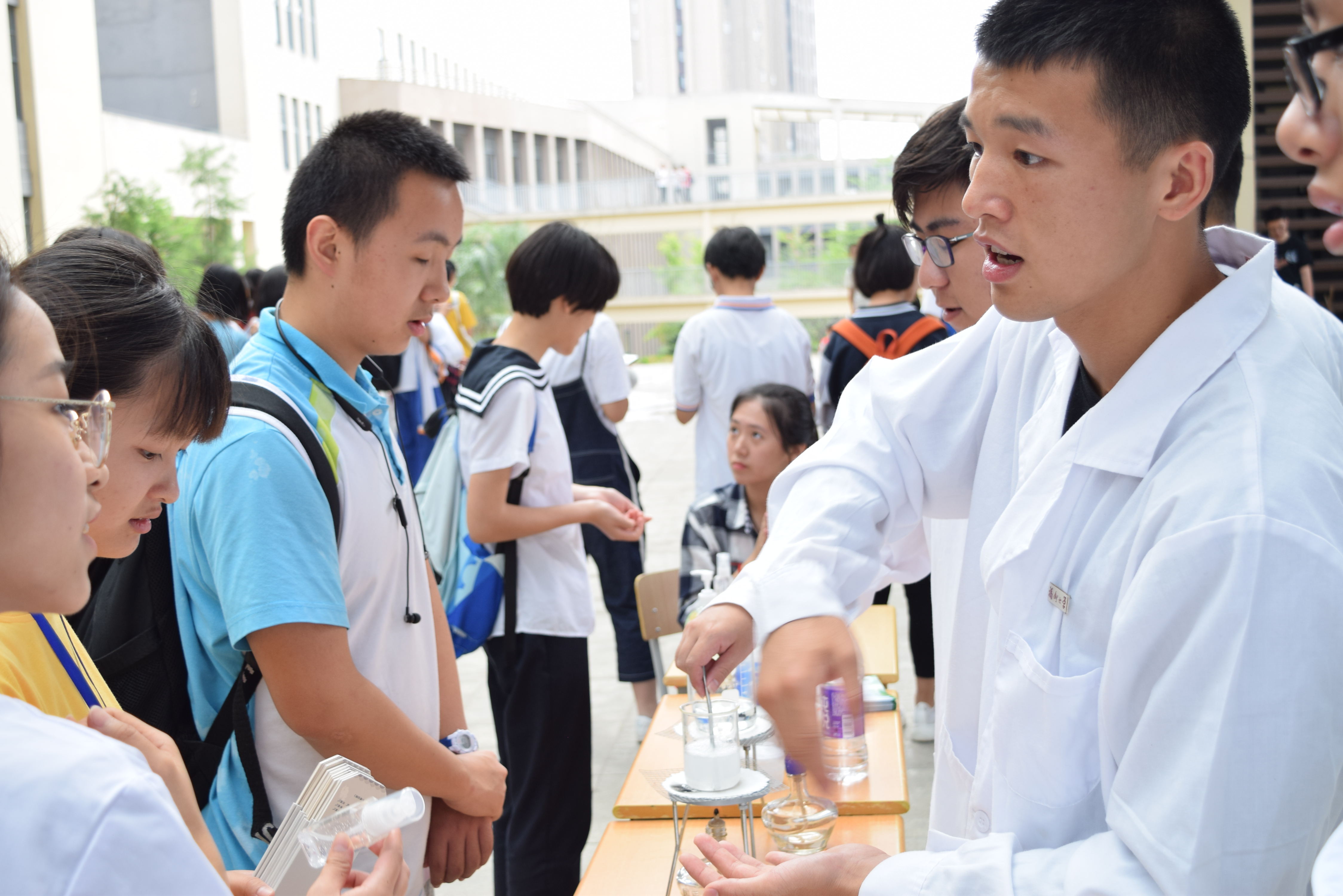 活动现场分成不同化工与生活小课堂体验站:在“洗手液”制备现场,协会的同学们向高中生们演示如何制作洗手液,并解答他们对于洗手液是否有毒有害的疑惑;“非牛顿流体”借助淀粉和水制作液流反弹的神奇效果;“自制刷鞋膏”与“古法蓝晒”为同学们展示了身边无处不在的化工原料和它们的广泛应用;“用火写字”更是吸引了一大批同学亲自动手实验制作属于自己的纪念品。这些将化工在同学和家长们心中“有毒”、“污染”的固有印象转变为“安全”、“可持续发展”的新形象,寓教于乐的方式还让亲身参与到化工实验的同学们体验到了其中的乐趣和神奇。 高一的何同学表示道,“化学化工真的十分贴近生活,而此次的化工科技文化节活动更让我认识到了,怎样从科学的角度去看待那些常识性的化学效应,去感受化学的神奇与美丽。”