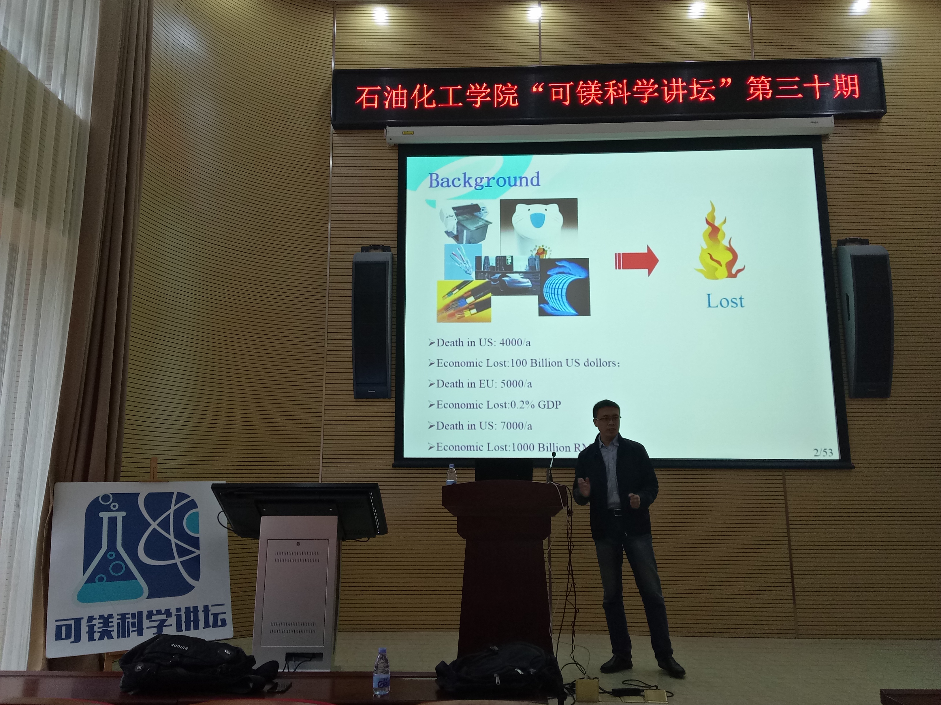 师生带来一次题目为《Fabrication of Magnesium-based flame retardant based on the structure enhancement and their applications》的精彩报告。本次讲座由江献财老师主持。