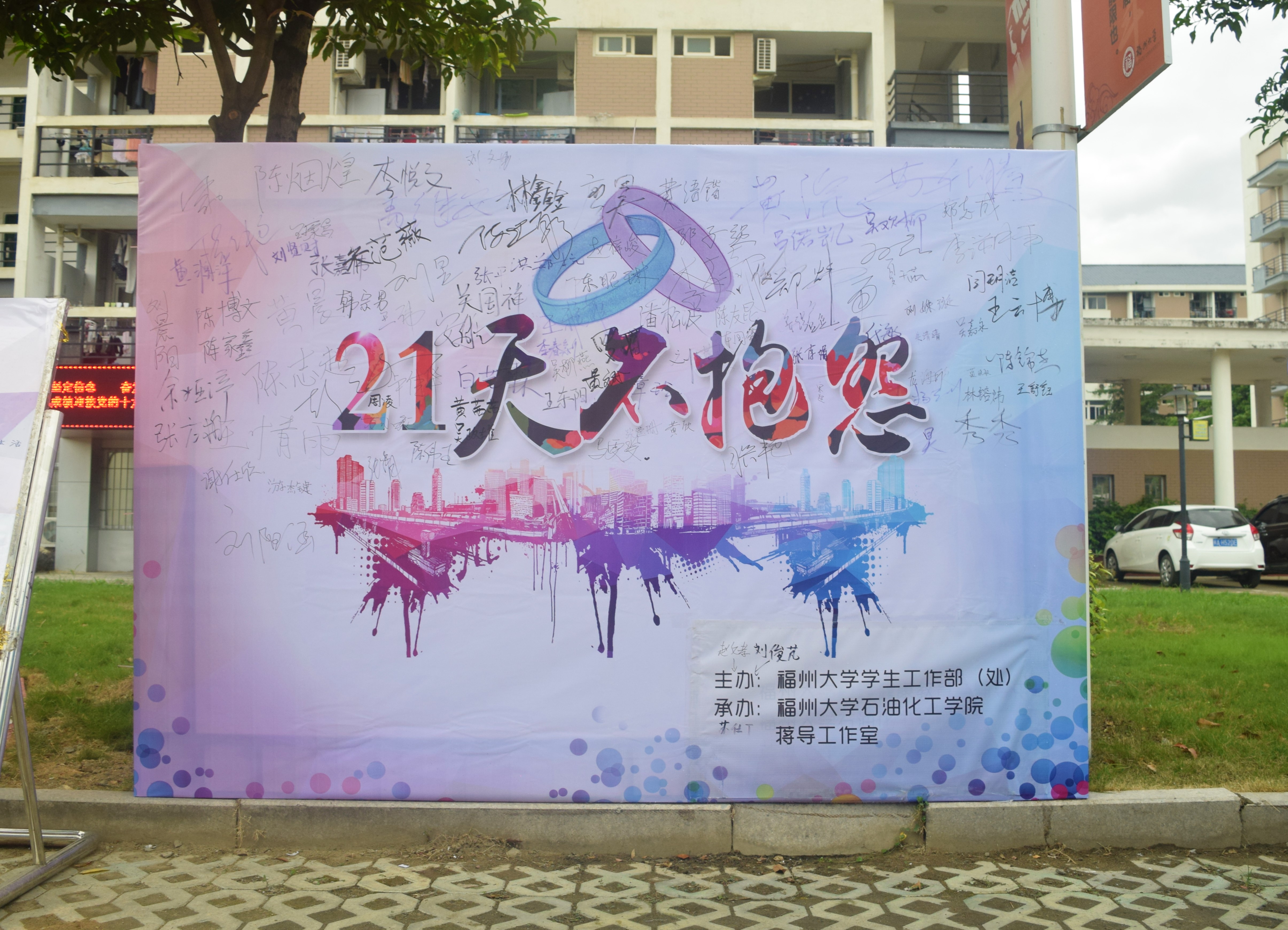 活动刚开始,不少同学停步观察,在几位工作人员积极主动邀请下,参与的人数不断增多,大家也在海报上留下自己的签名,盖上自己开启“不抱怨之旅”的“印章”。现场,工作人员细心地科普具体做法并分发手环,看似简单的规则做起来却不容易,激发了同学们的挑战欲。一位穿黑色外套的男生表示,自己平时抱怨的话经常脱口而出,每天都是满满的负能量。所以想参加这个活动,改变自己,培养积极乐观的心态。