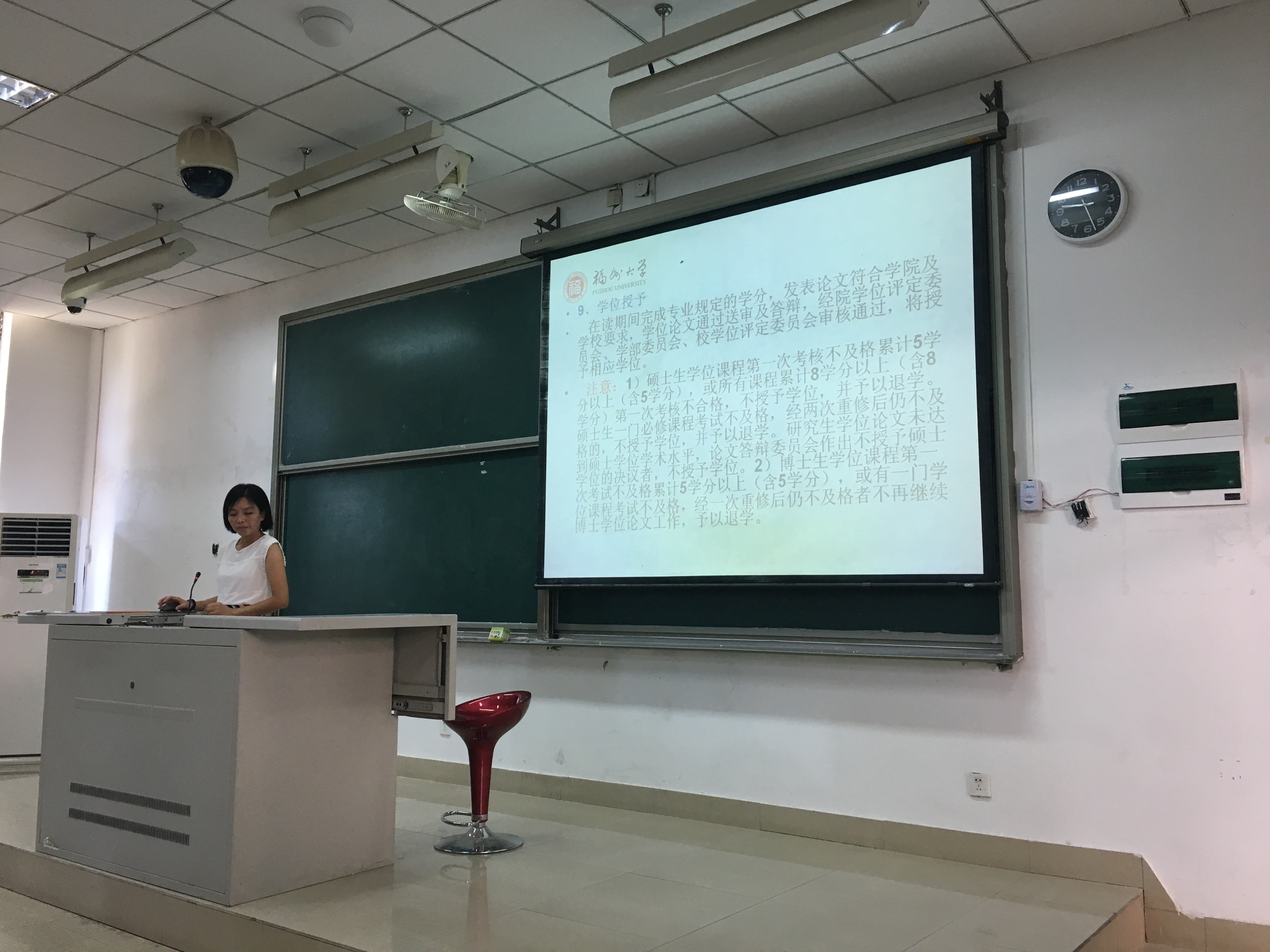 成功举行了学习《研究生手册》之学籍管理专题讲座,此次讲座邀请了团委书记蒋林娟老师、院研究生办刘文慧老师为2017级研究生新生详细讲解了学籍管理的相关内容。