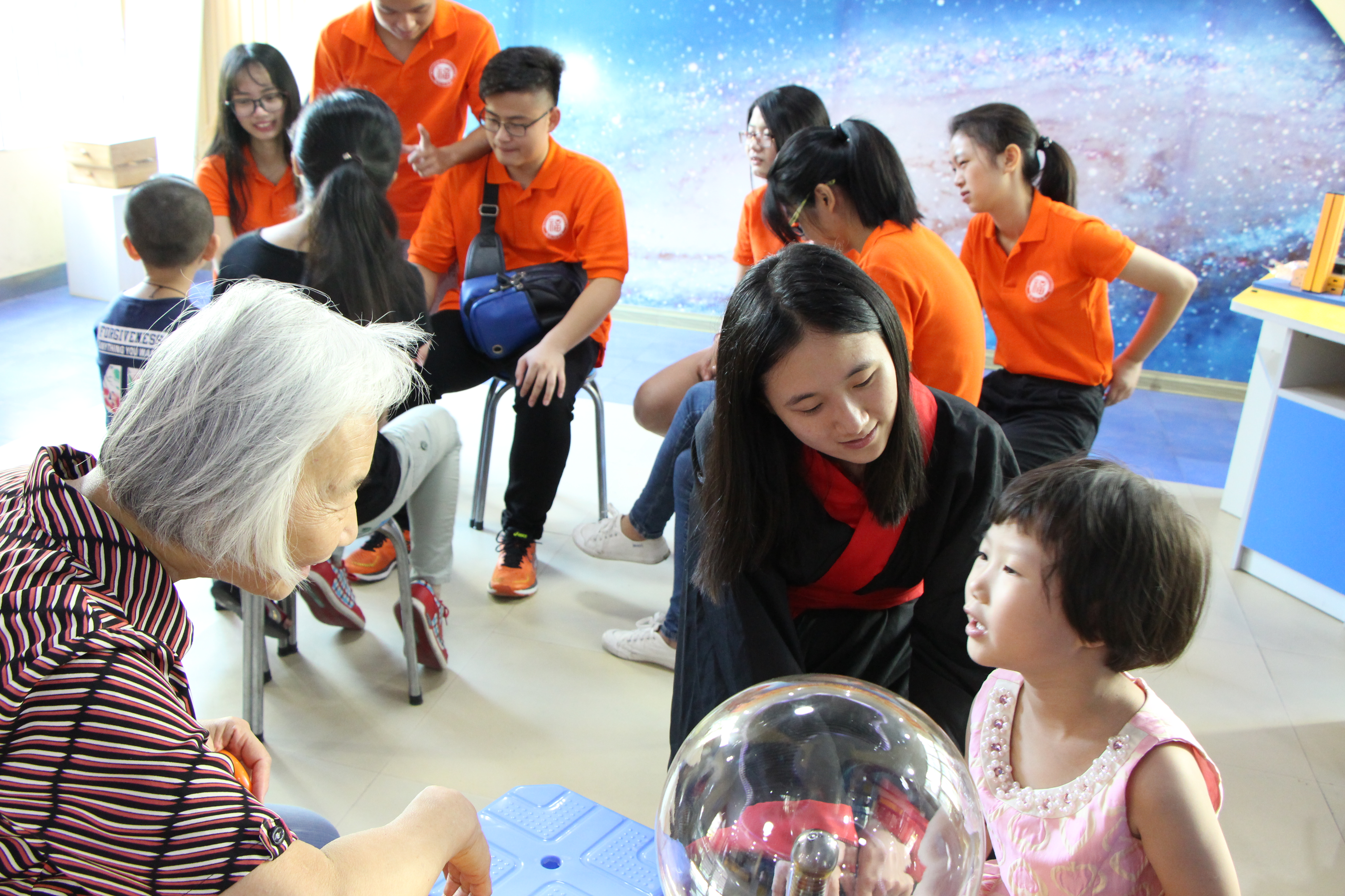 来到社区青少年活动中心后,将孩子们分成两组,一组学习手语,一组诵读三字经,也是国学夏令营的一部分。活动还吸引了不少附近的家长。用寓教于乐的方式,带领着小朋友做游戏,和他们初步建立了融洽的关系。