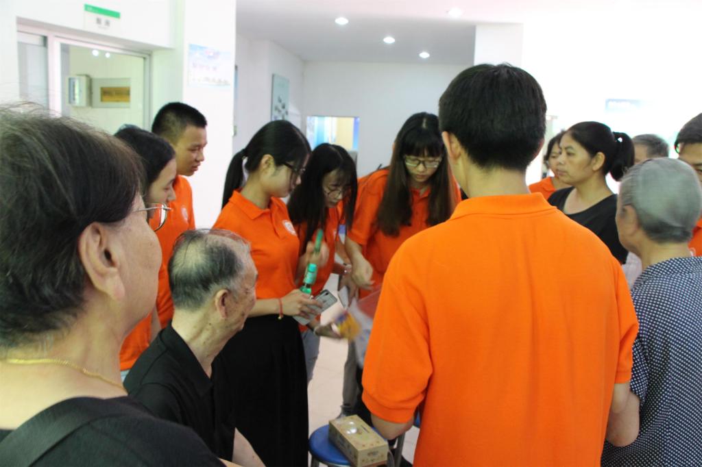 赴仓山区金环社区暑期社会实践队抵达金环社区开展“青春伴夕阳”活动。在本次活动中,实践队员们陪同社区老人一起畅聊青葱岁月。70岁以上的高龄,医务工作者和人民教师的职位,其中的两位老爷爷还曾经参加越南战争的经历都另每一个实践队员心生敬仰。活动过程中,我们一同回味《南泥湾》、《年轻的朋友来相会》等经典曲目,无论是用小提琴重新演绎还是爷爷奶奶向实践队员讲述歌词的内涵,无一不赋予了歌曲全新的生命力,导引出时代性的张力。