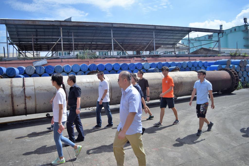 7月16日,博士服务实践队来到了位于椒江入海口的联盛化学集团有限公司老工厂,斑驳的墙壁和富有年代感的建筑,仿佛在诉说着这个创建于99年的强大企业的往事。博士服务实践队在黄经理的引导下参观了厂区的实验室以及生产设备。与学校实验室的职能不同,工厂实验室着重于通过研发来将设计路径工业化。参观过程中,队员们也纷纷提出了对实验室中一些设备的问题和想法,与技术员们展开交流,并分享了自己使用设备工作的技巧和方法。