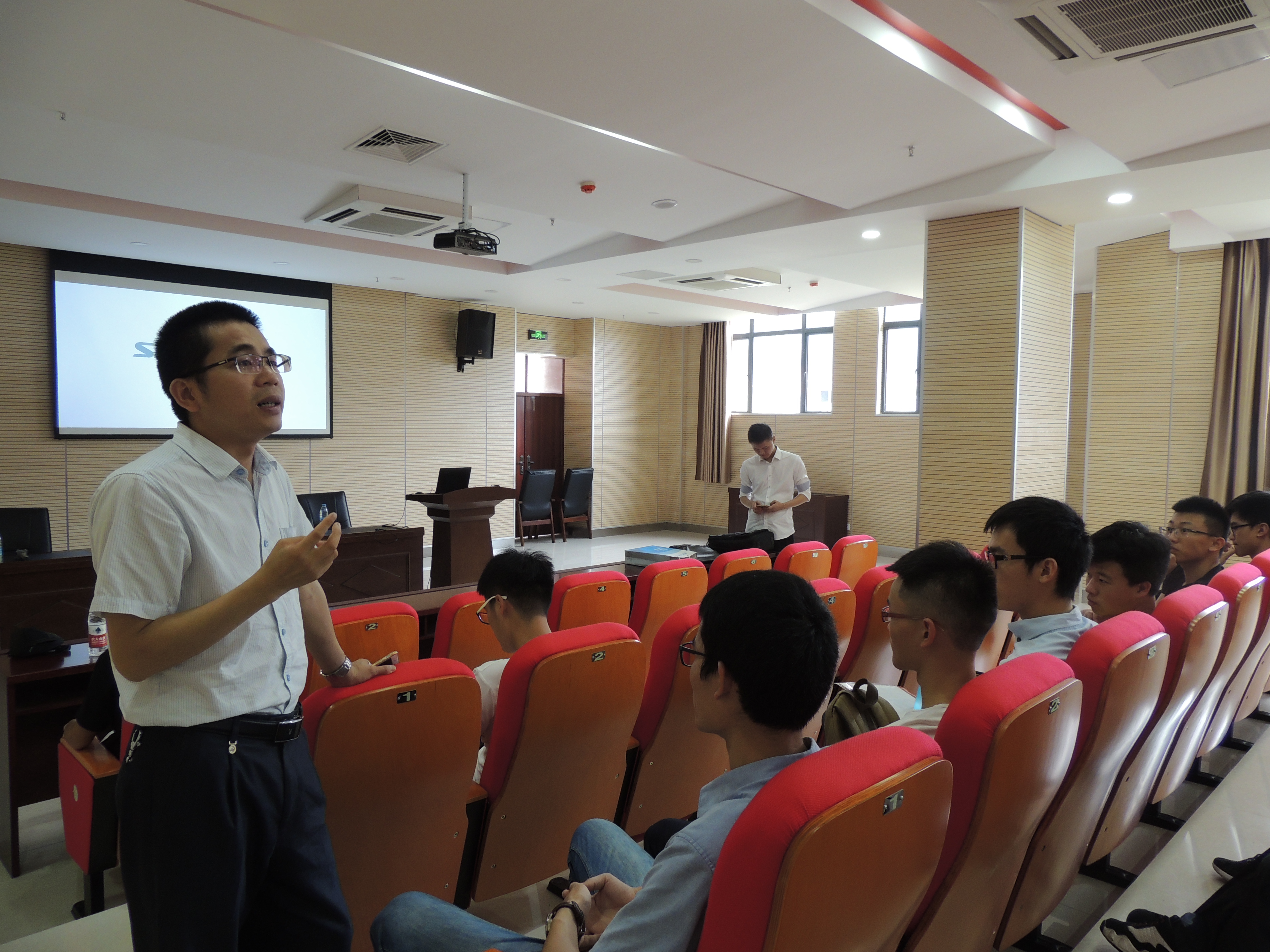 宣讲会伊始,雪人股份人力资源总监曹雪飞就目前公司的发展前景、行业状况以及本土企业等等做了简介,并让同学们多了解制冷制冰方面的知识,他还与同学们分享了自己从业心得,分享了招聘的条件,给我们传授相关的应聘指南。紧接着,曹总监介绍了雪人创新创业实验班的实验教学方案,该方案通过增加适当合理的设备课程提高同学们对雪人的认识以及接触本行业的更多设备、更快更好地适应行业的要求。最后,现场的互动环节,同学们就自己的疑惑与曹总监进行了交流。