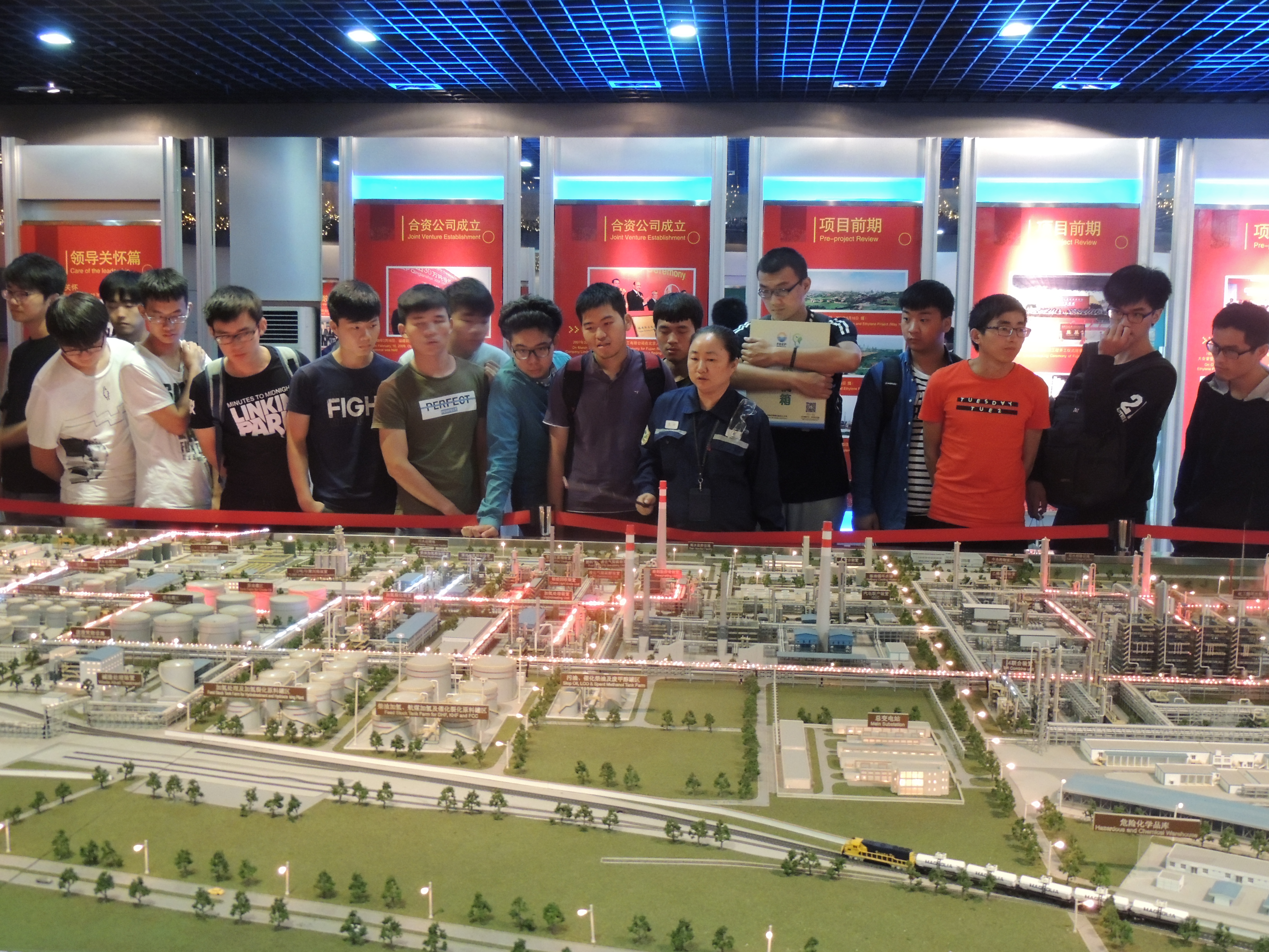 领导、老师和同学参观了装置模型、联合石化厂区、新中控室、化验室等。联合石化安全健康环保部还给同学们播放了安全生产与节能减排的宣传片,让同学们受益匪浅。