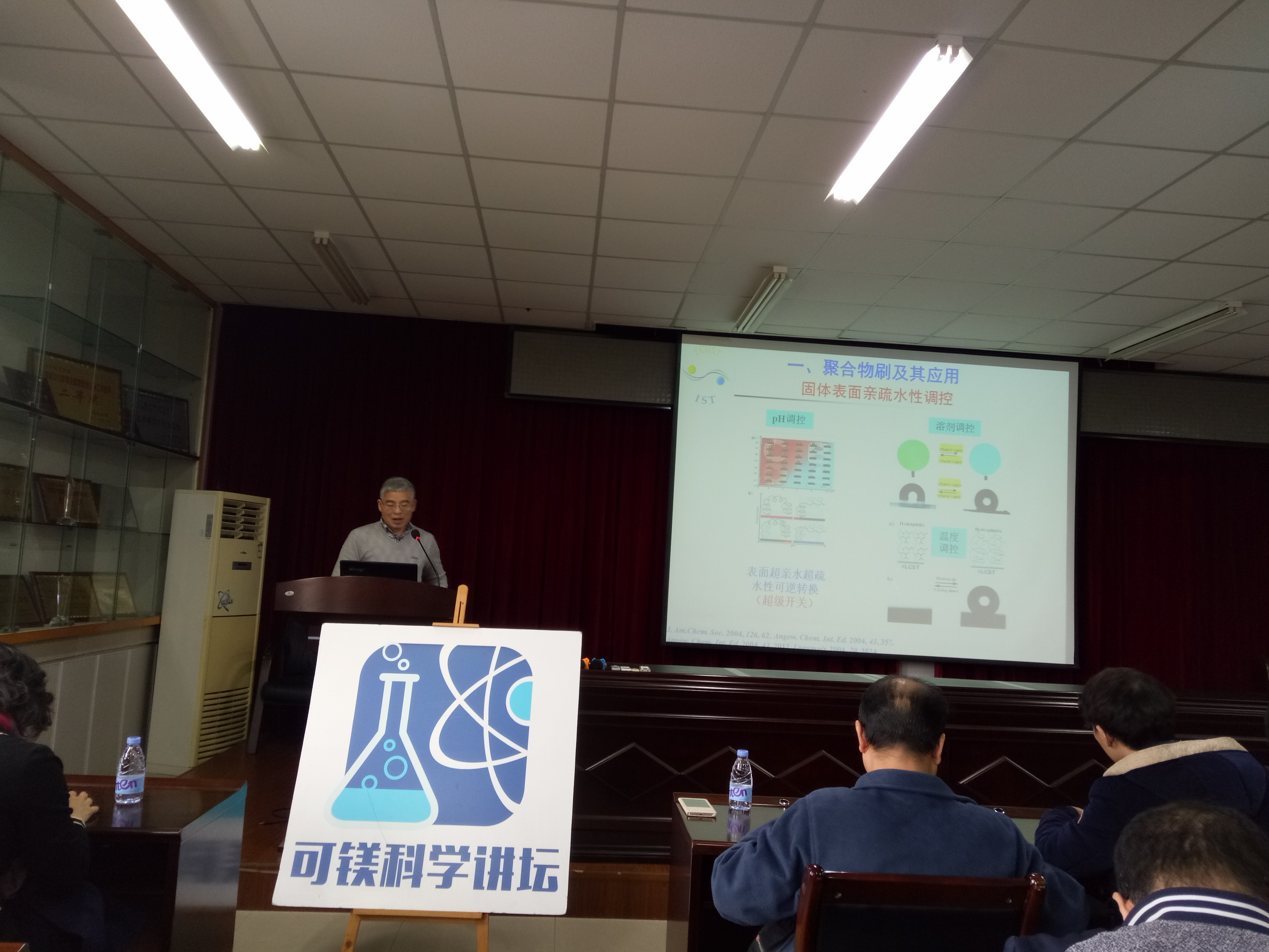 师生带来一次题目为《固体表面改性:聚合物刷的溶剂响应特性》的精彩报告。本次讲座由邱挺教授主持。