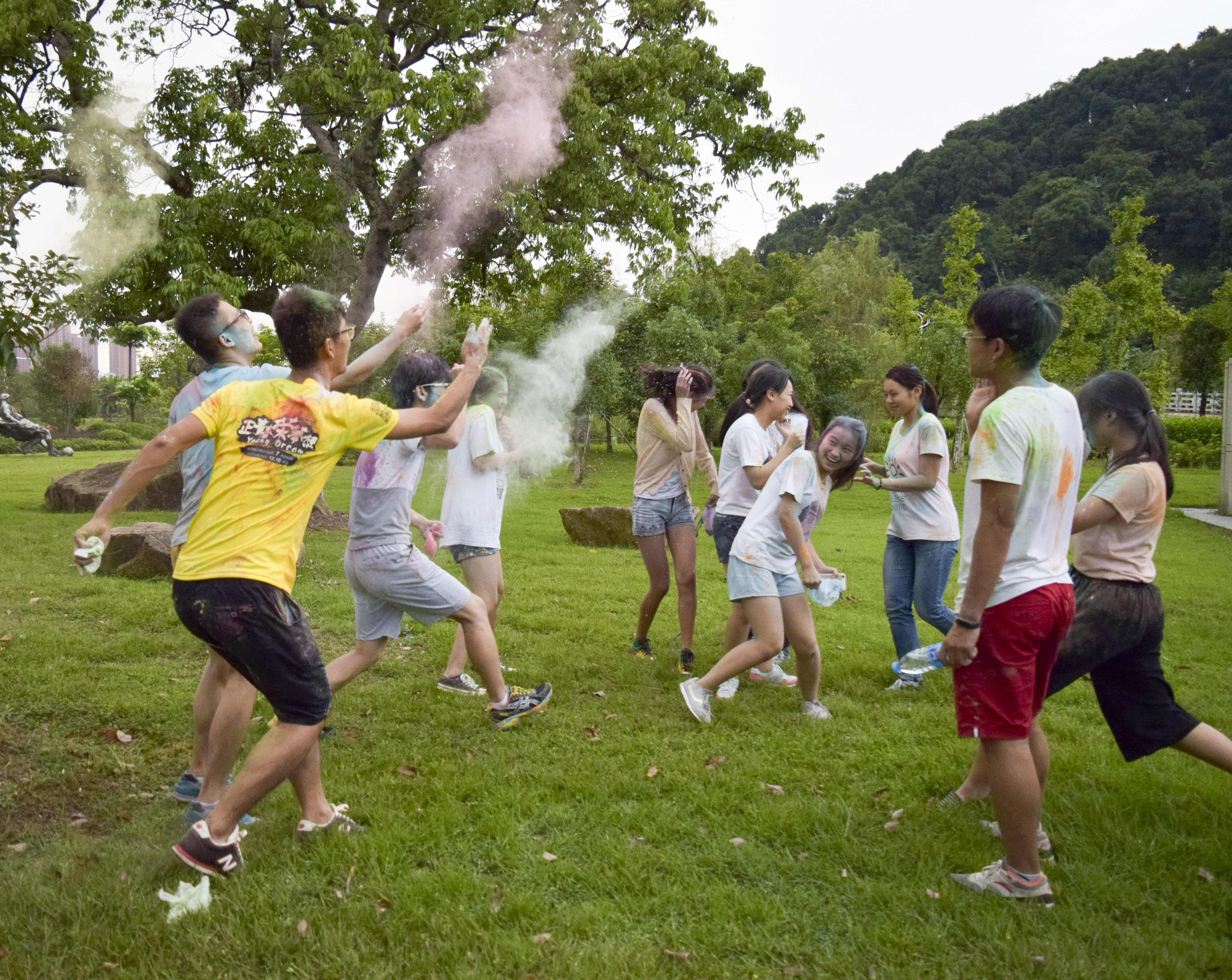 比赛伊始,参赛队伍先于素拓中心集合,经过通力合作,完成了过草地、渡乌江、爬雪山的模拟关卡,并进行寻宝路障的趣味阶段。各个队伍环绕一圈后回到起点,进行最后自由撒粉攻击环节。各组队员之间玩命撒粉,瞬间都变成了五颜六色的“彩虹人”。