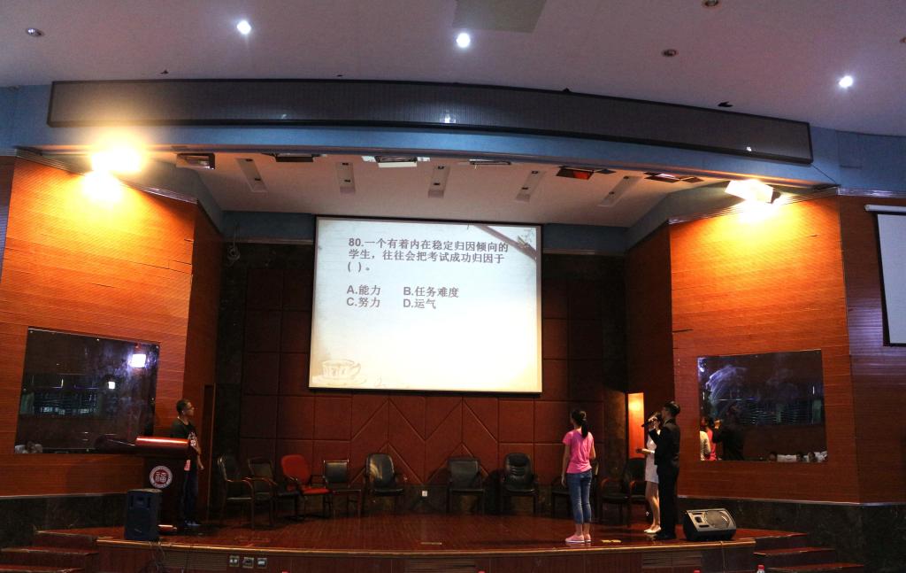 在每位工作人员的辛勤工作和选手的积极参与下,心理健康知识竞赛成功举办。本次比赛内容以心理知识为主,同时涉及生物,物理,社会科学等学科内容。同学们在紧张激烈的氛围中不但体会到比赛的乐趣,同时也成功学到了心理健康知识。