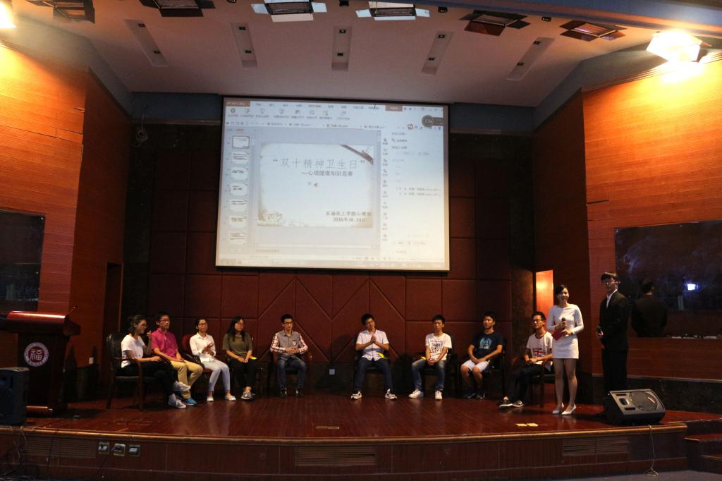 第二届“心理健康知识竞赛”决赛于嘉锡厅隆重举行。本次活动由石化心理部承办,各位参赛者都是经过预赛脱颖而出的佼佼者。院团委学生会主席团成员、心理部部长徐志沛观看了本次决赛,人文学院心理部部长田嘉乐,土木学院心理部部长林涵彦,物信心理部部长许立斌等人也应邀来观看。