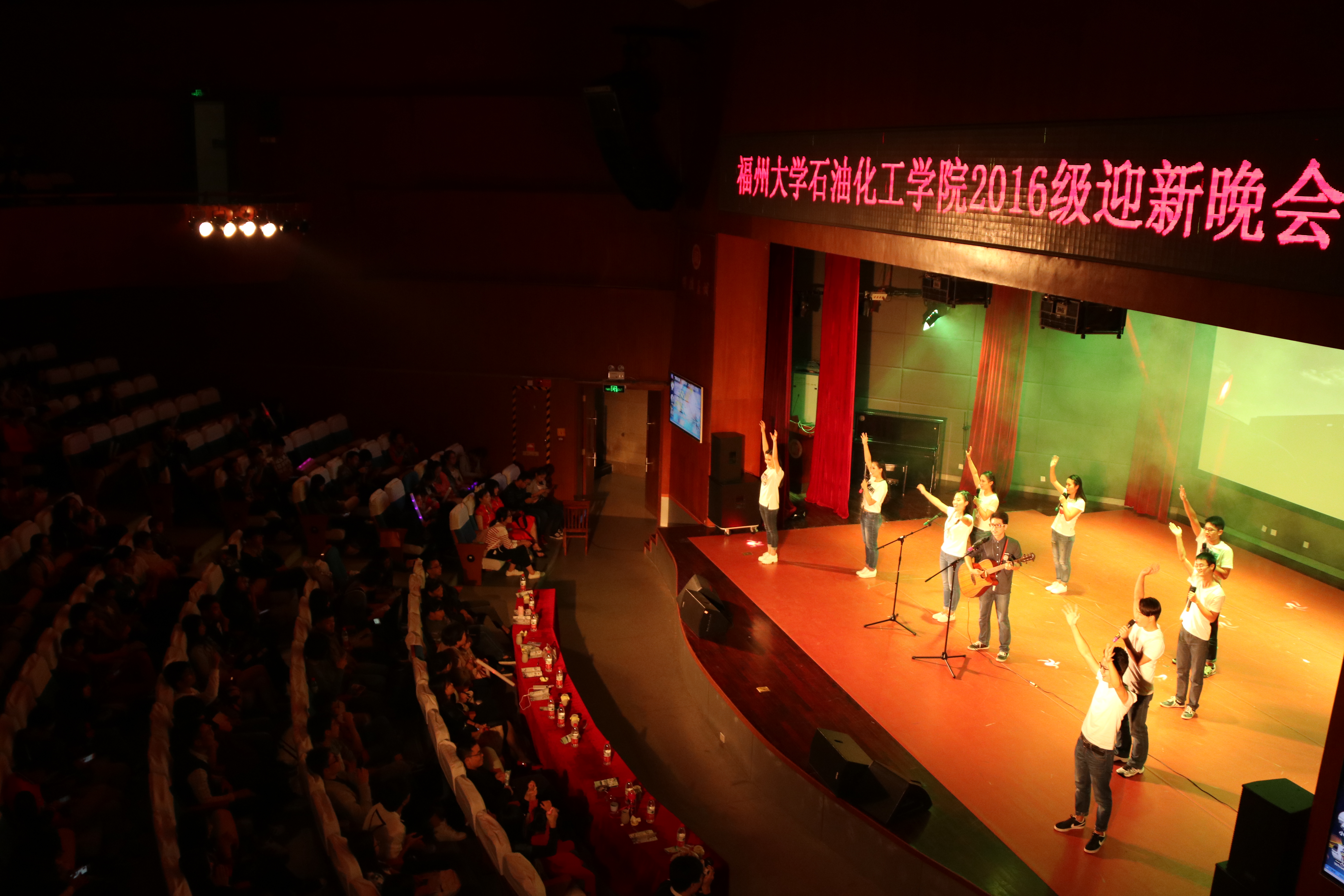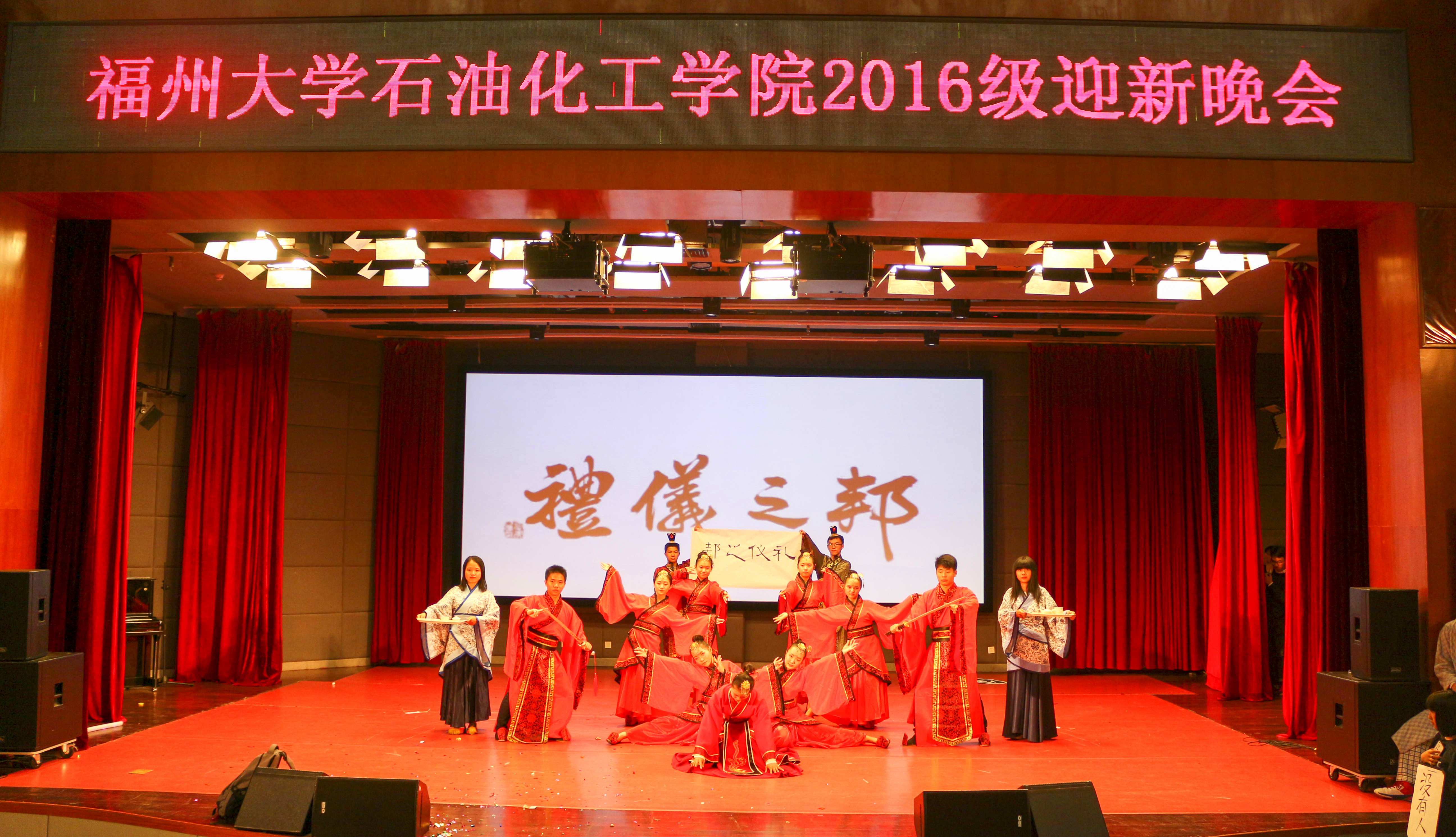 2016级迎新晚会在图书馆博学厅隆重举行。出席晚会的嘉宾有:院党委副书记刘玮、团委书记蒋林娟、团委副书记伍宇翔、16级辅导员陈艺全、15级辅导员黄建鸿及16级助理辅导员何杰,2016级全体本科和研究生新生观看了此次晚会。